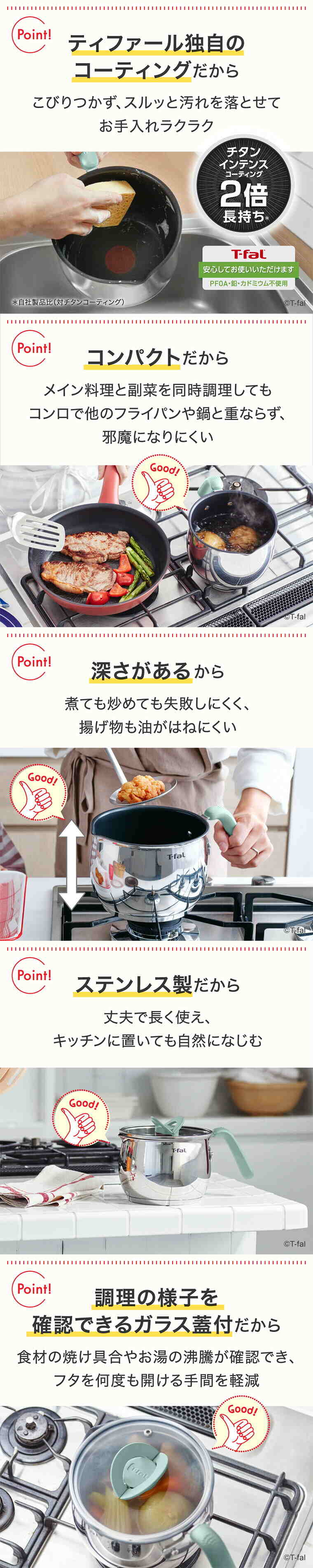 ・内側は「チタン・インテンス コーティング」で、使い始めのこびりつきにくさが長く続きます。