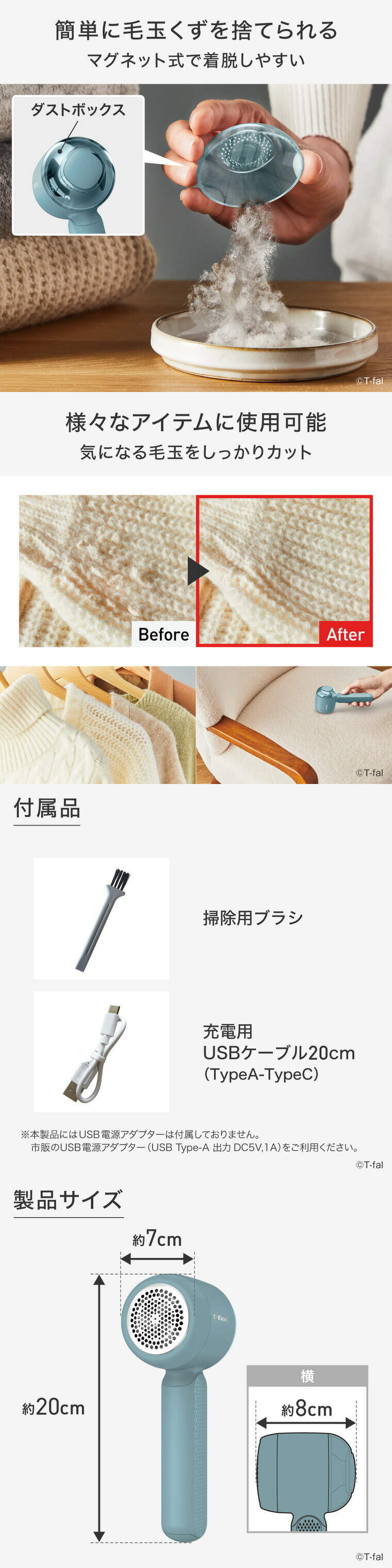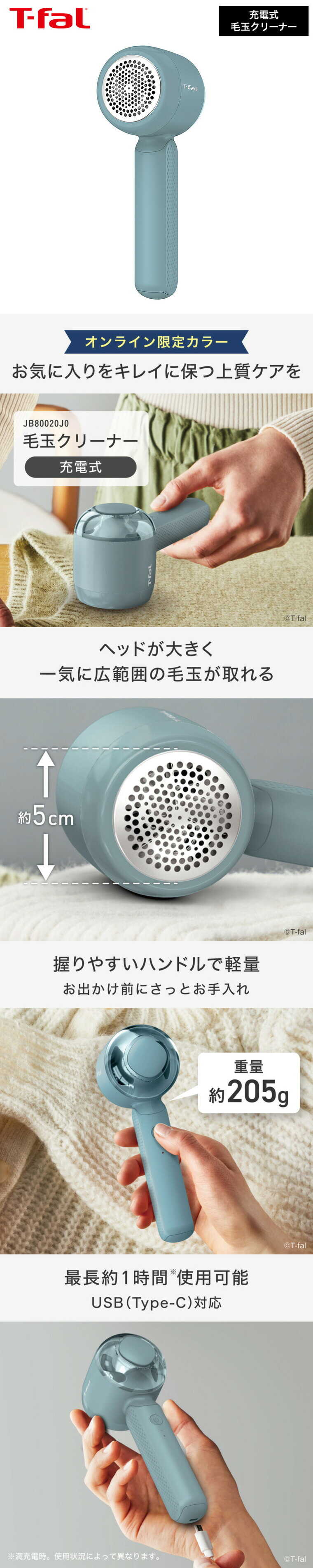 ティファール T-fal 充電式毛玉クリーナー ブルー JB8002J0 / 毛玉取り器 電動 USB充電式 コードレス