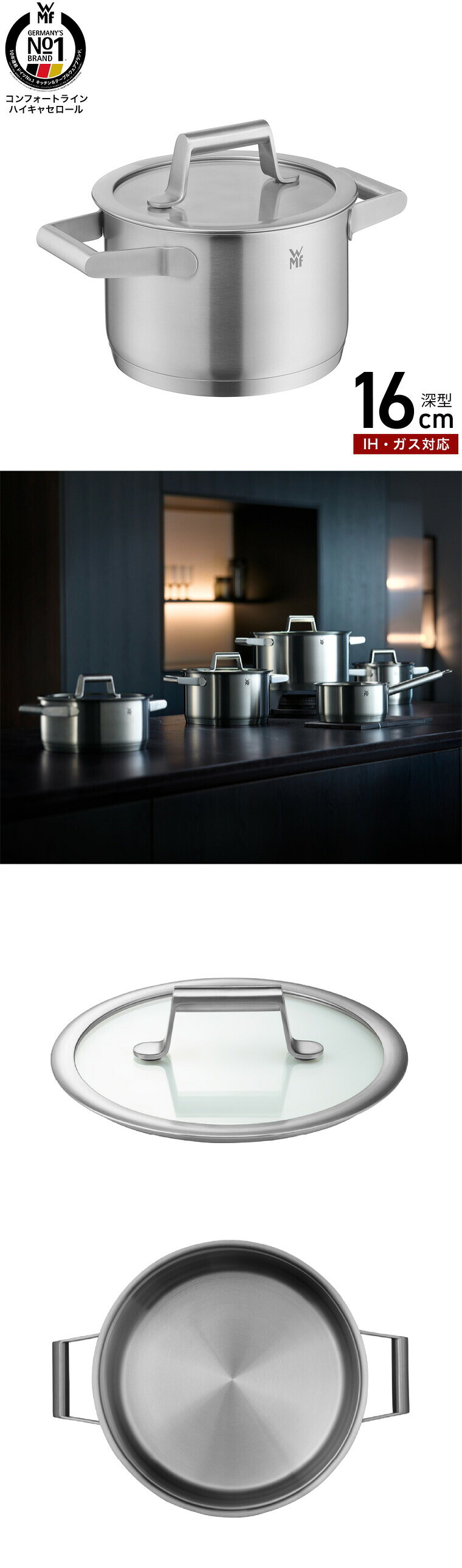 WMF コンフォートライン ハイキャセロール 両手鍋 16cm W0729166040 IH対応 ガス火対応 万能鍋 ガラス蓋付き 食洗機対応 オーブン対応