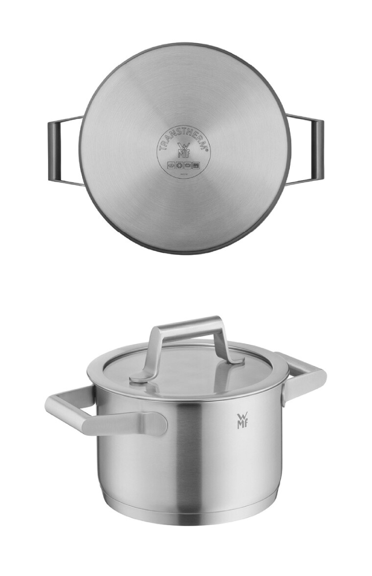 WMF独自の高品質ステンレスCromargan®(クロマーガン)と高い熱伝導を誇る独自の底面三層構造TransTherm® universal base(トランサムユニバーサルベース)により、耐久性と快適な使用性を両立した鍋シリーズです。