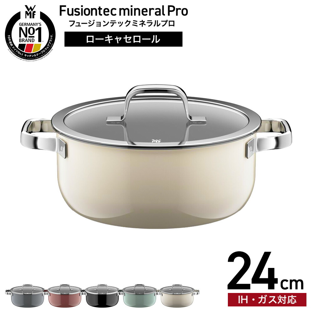 WMF ヴェーエムエフ フュージョンテック ミネラルプロ ローキャセロール 24cm IH対応 ガス火対応 / 浅型 両手鍋 鍋 蓋付き 食洗機対応 オーブン対応 10年保証 / プラチナム(PL)