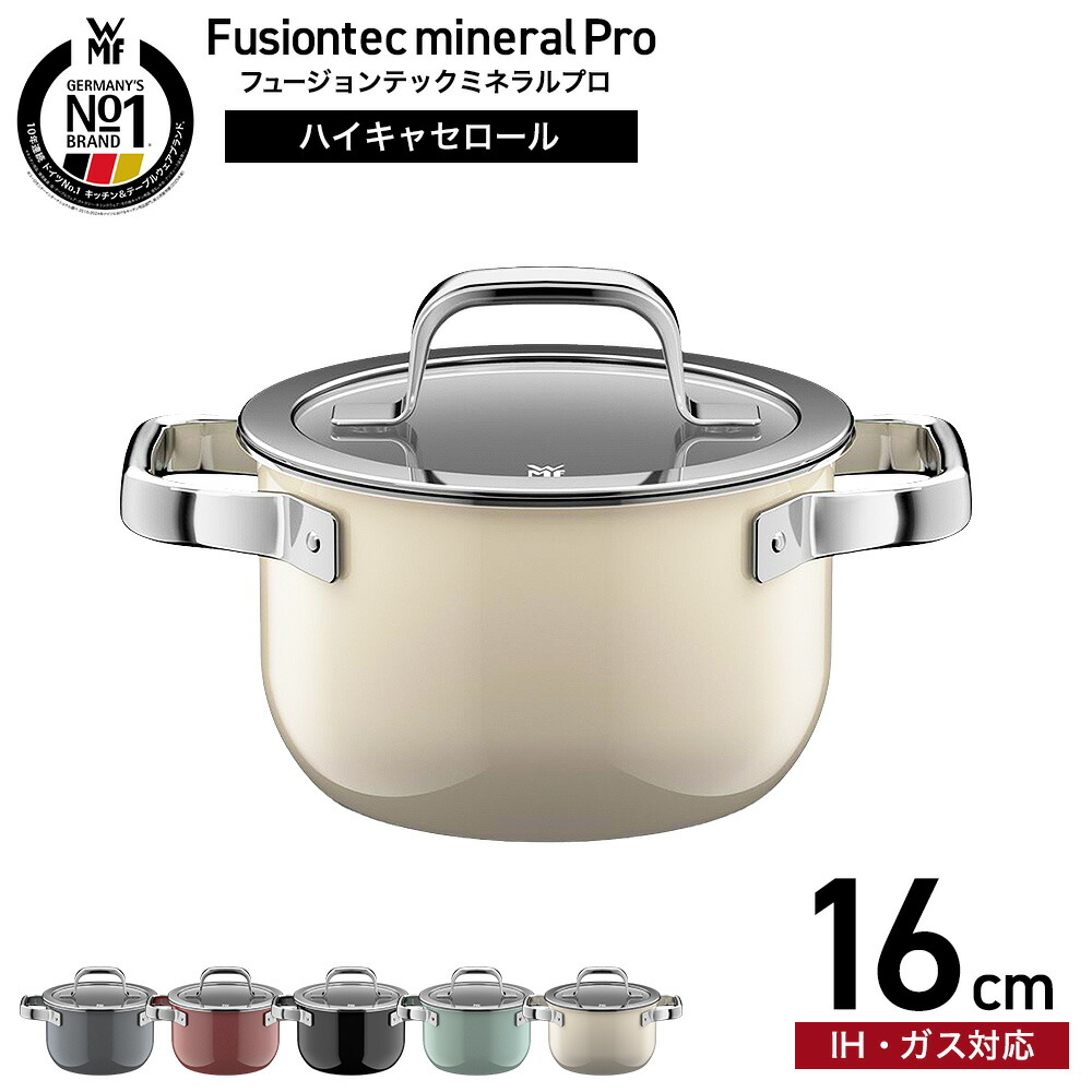 WMF ヴェーエムエフ フュージョンテック ミネラルプロ ハイキャセロール 16cm IH対応 ガス火対応 / 深型 両手鍋 寸胴鍋 蓋付き 食洗機対応 オーブン対応 10年保証 / プラチナム(PL)