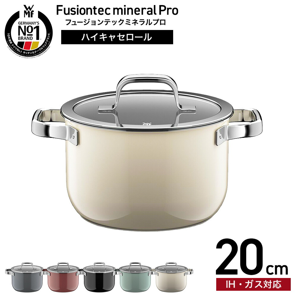 WMF ヴェーエムエフ フュージョンテック ミネラルプロ ハイキャセロール 20cm IH対応 ガス火対応 / 深型 両手鍋 寸胴鍋 蓋付き 食洗機対応 オーブン対応 10年保証 / プラチナム(PL)