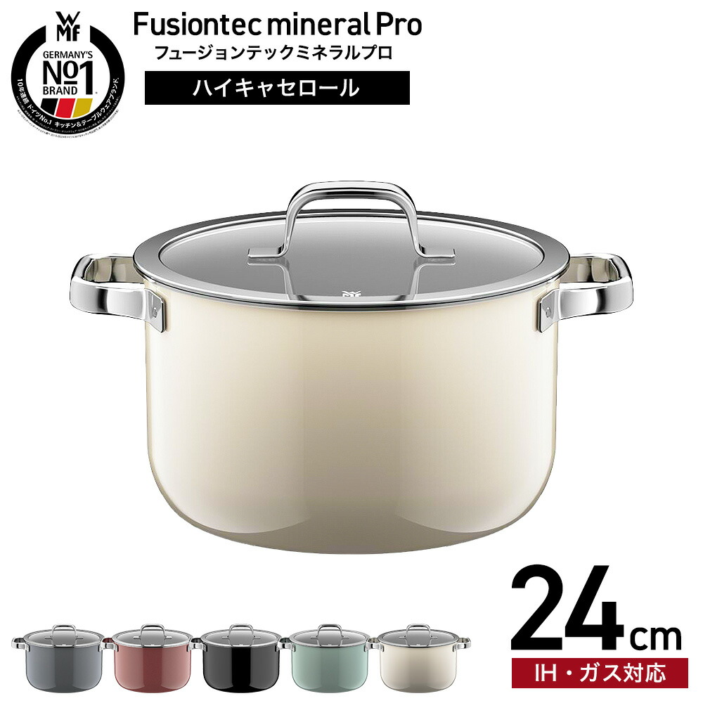 WMF ヴェーエムエフ フュージョンテック ミネラルプロ ハイキャセロール 24cm IH対応 ガス火対応 / 深型 両手鍋 寸胴鍋 蓋付き 食洗機対応 オーブン対応 10年保証 / プラチナム(PL)