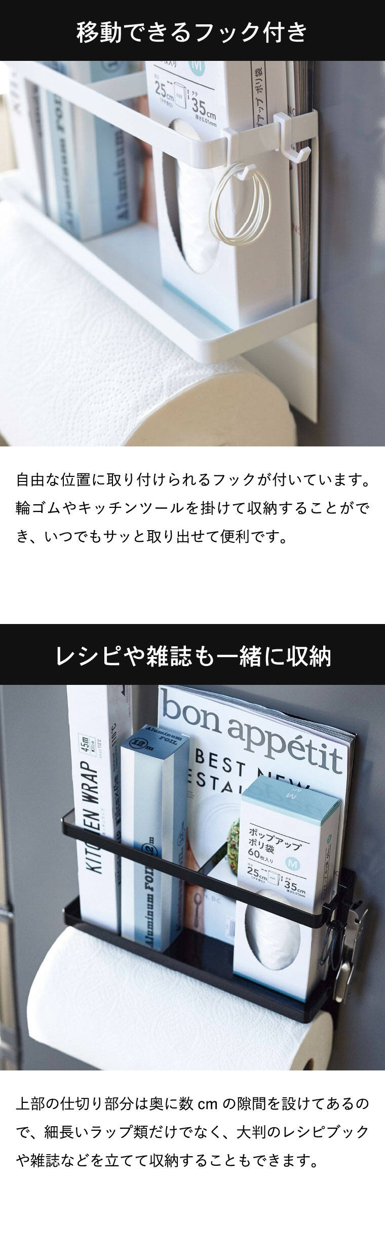 よく使うラップとキッチンペーパーを一括収納!