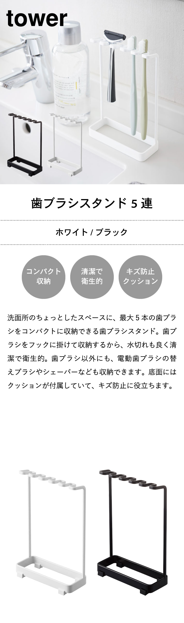 山崎実業 公式 tower 歯ブラシスタンド 5連 タワー ブラック 4699