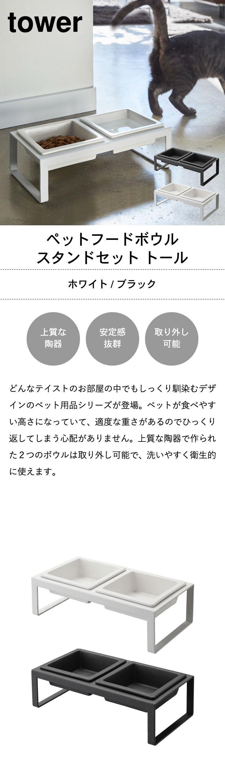 山崎実業 公式 tower ペットフードボウルスタンドセット トール タワー ホワイト 4744