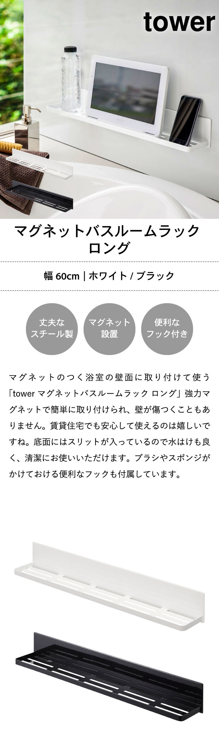 山崎実業 公式 tower マグネットバスルームラック タワー ロング ブラック 4859