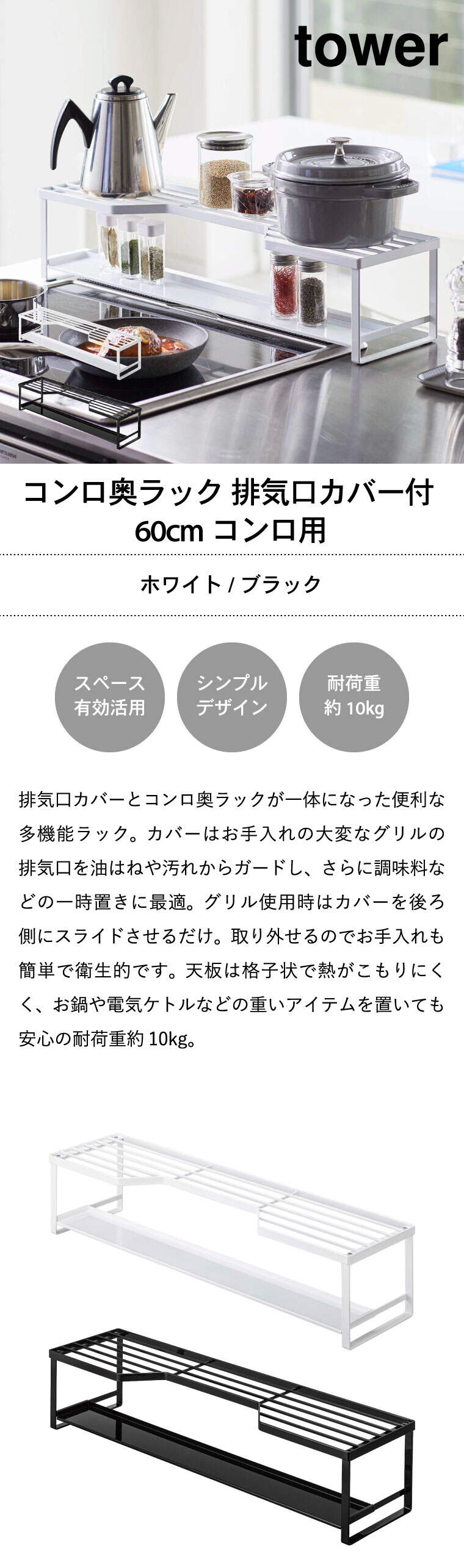 山崎実業 公式 tower コンロ奥ラック 排気口カバー付 60cmコンロ用 タワー ブラック 5269