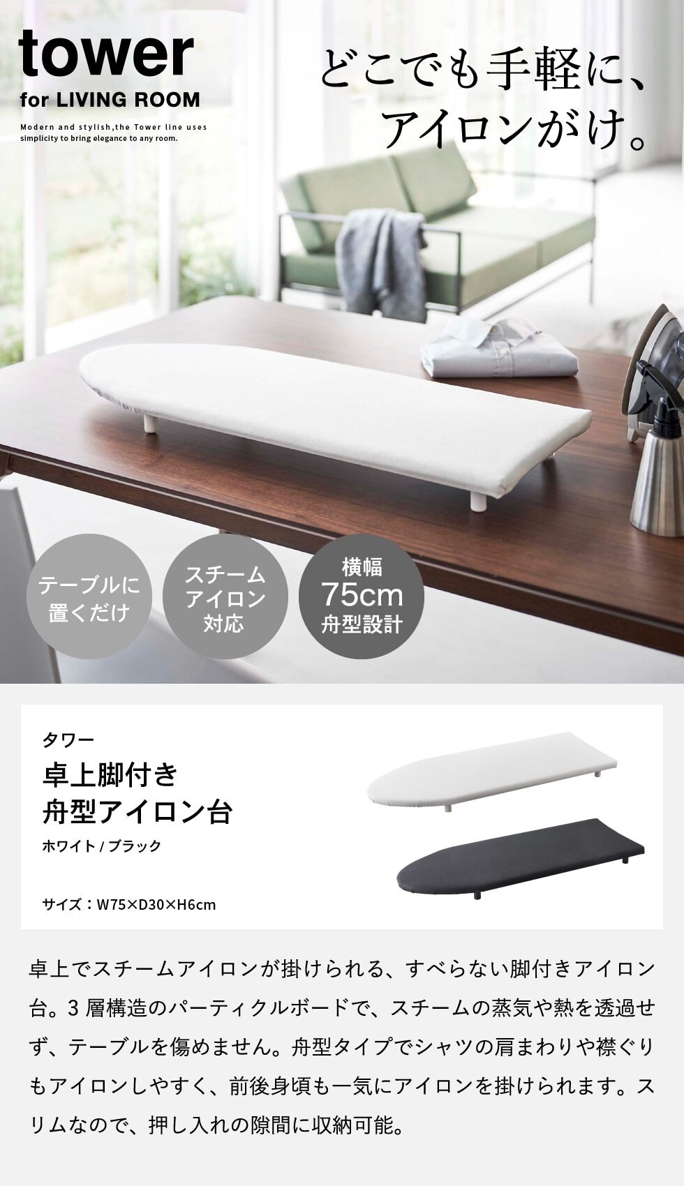 山崎実業 公式 tower 卓上脚付き 舟型アイロン台 タワー ブラック 5784