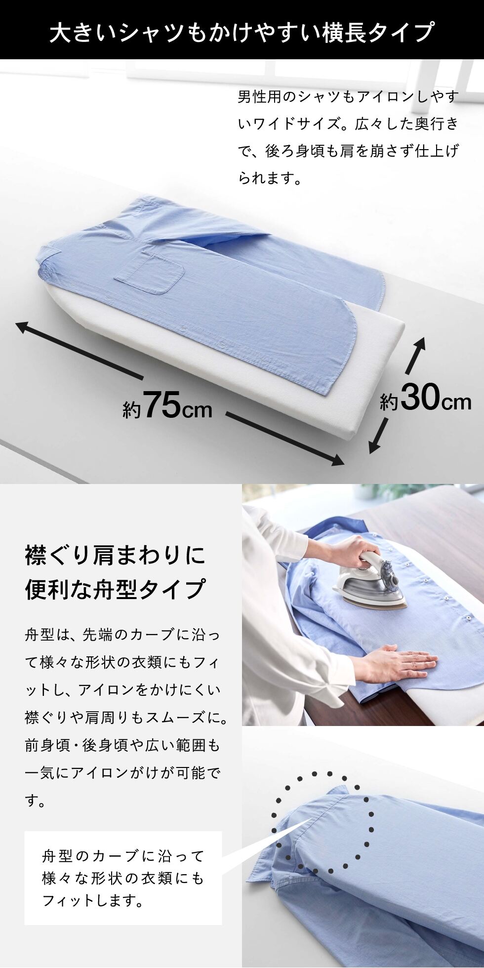 舟型は前身頃、後身頃をアイロン掛けしやすい形状。