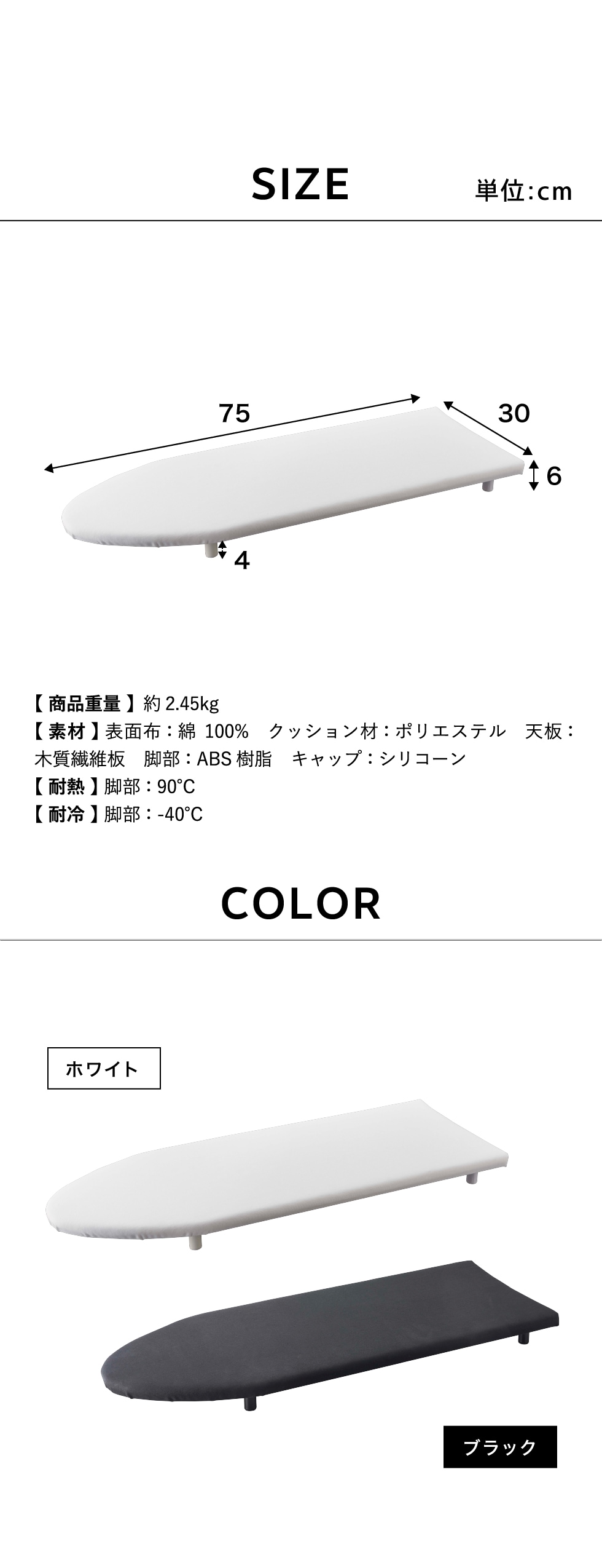衣類をアイロン台の下に滑り込ませられるので、立体的にアイロン掛けができます。