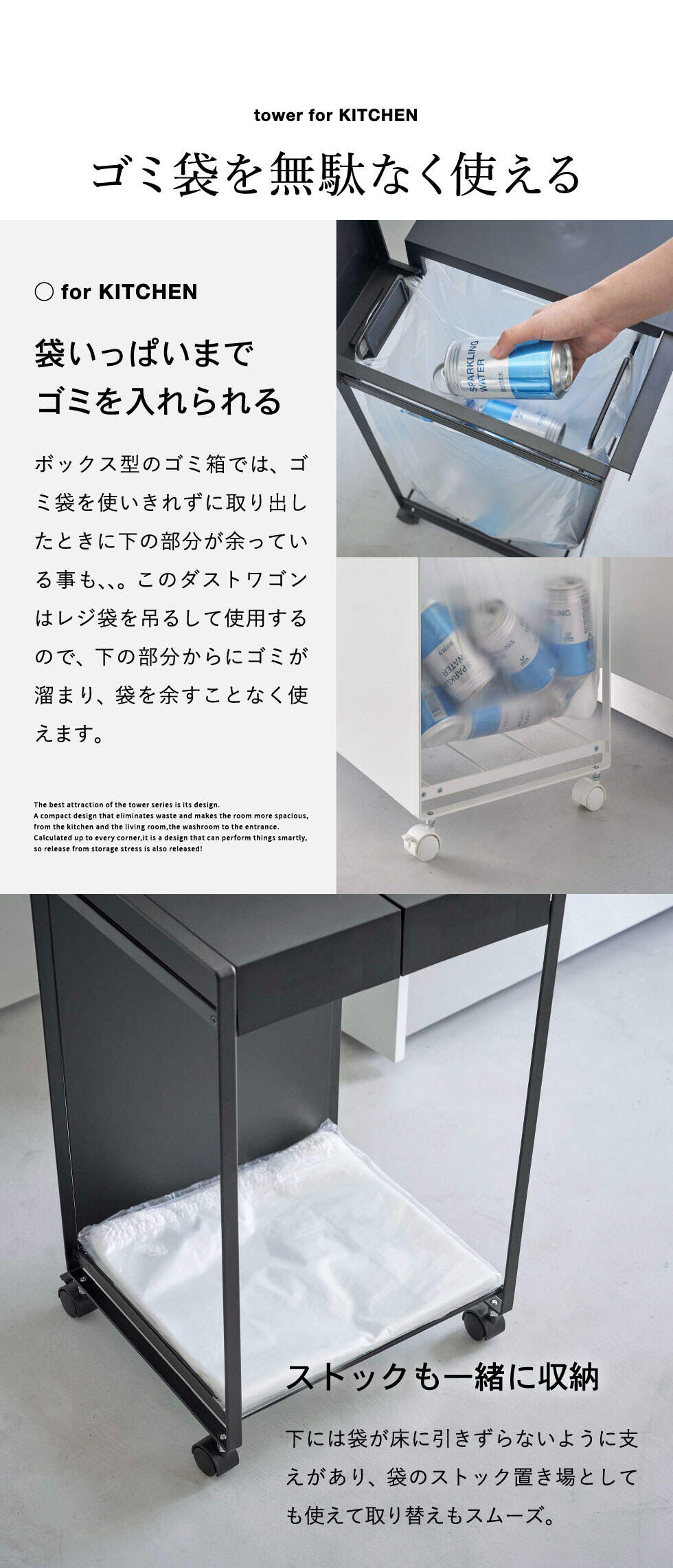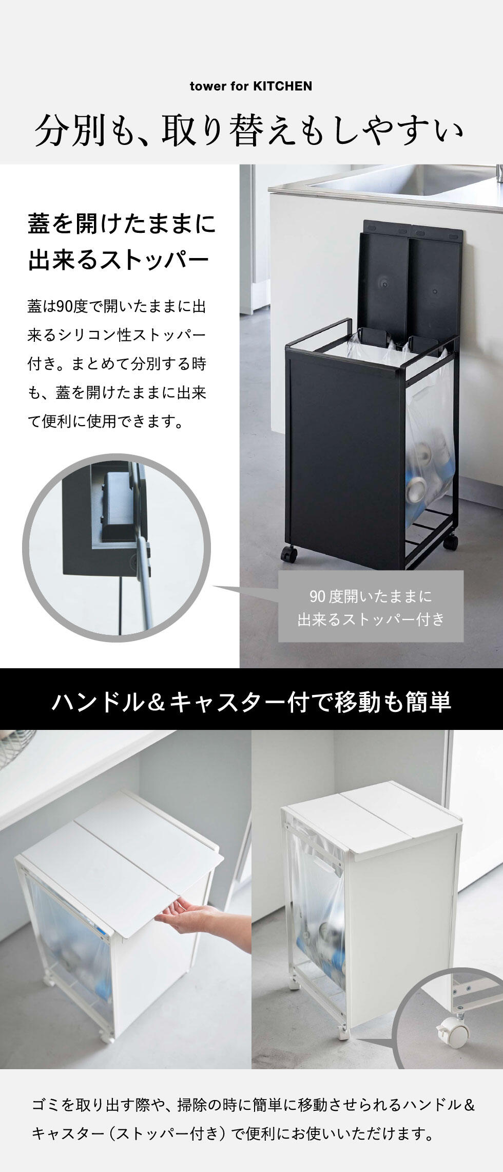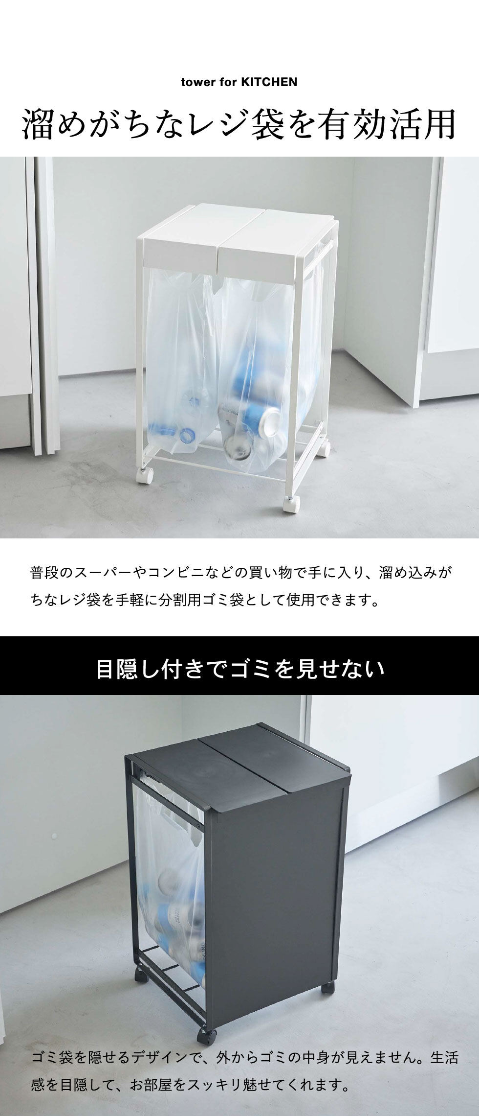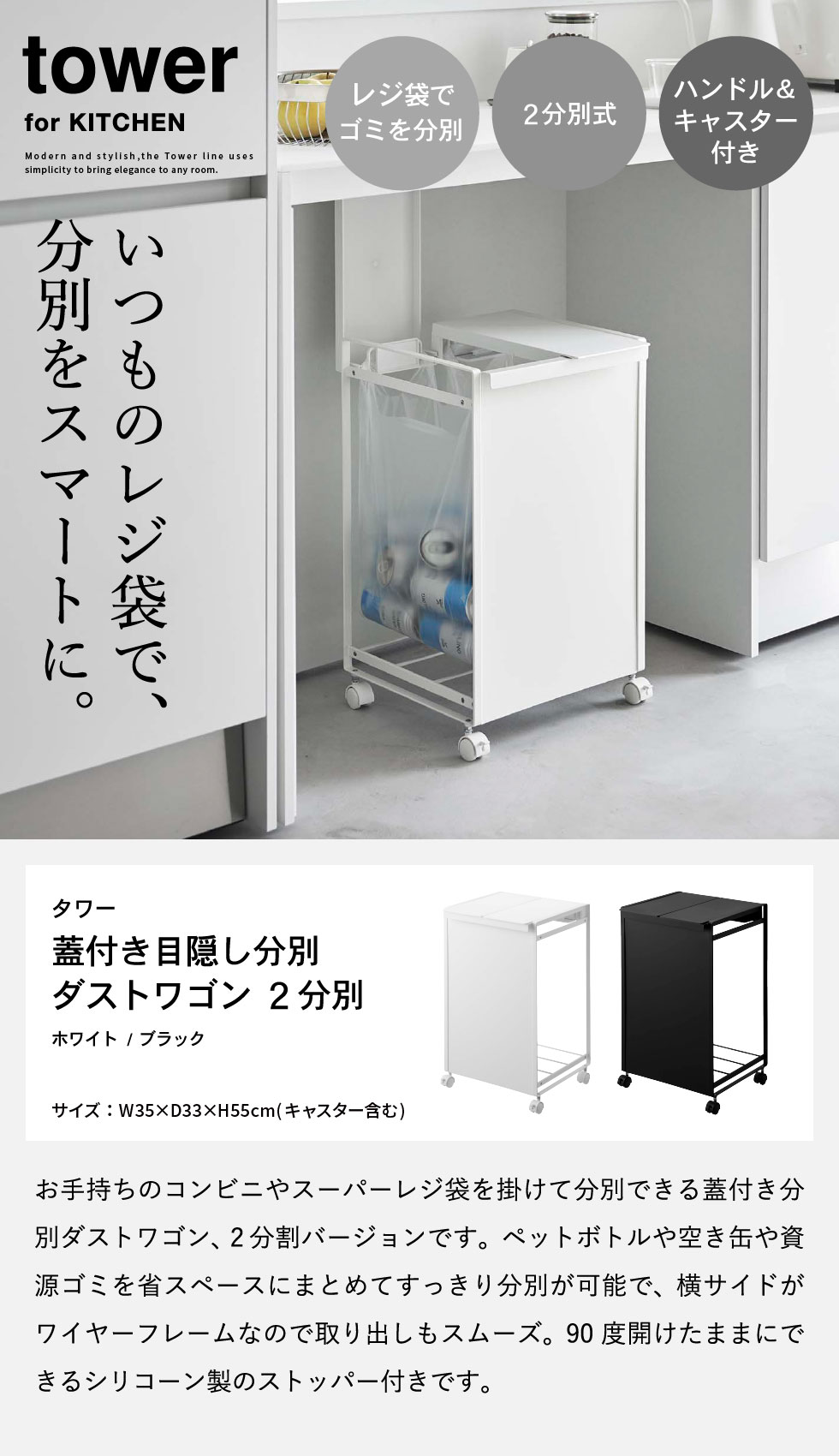 山崎実業 公式 tower 蓋付き目隠し分別ダストワゴン タワー 2分別 ブラック 5976