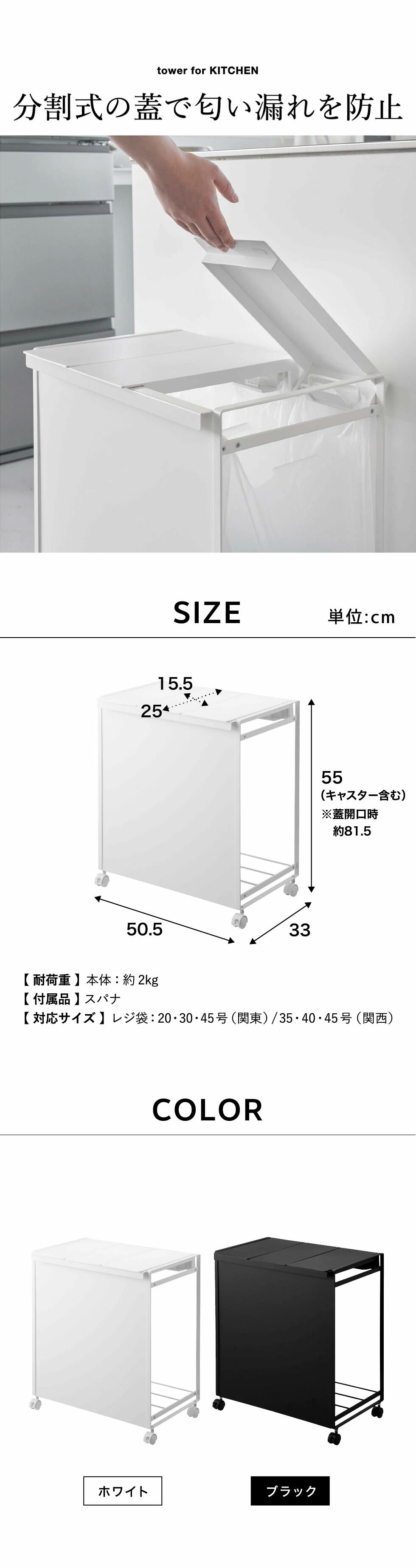 | 原材料/素材/材質 | 本体:スチール(粉体塗装) 蓋:ポリプロピレン ストッパー:シリコーン キャスター:ナイロン |
