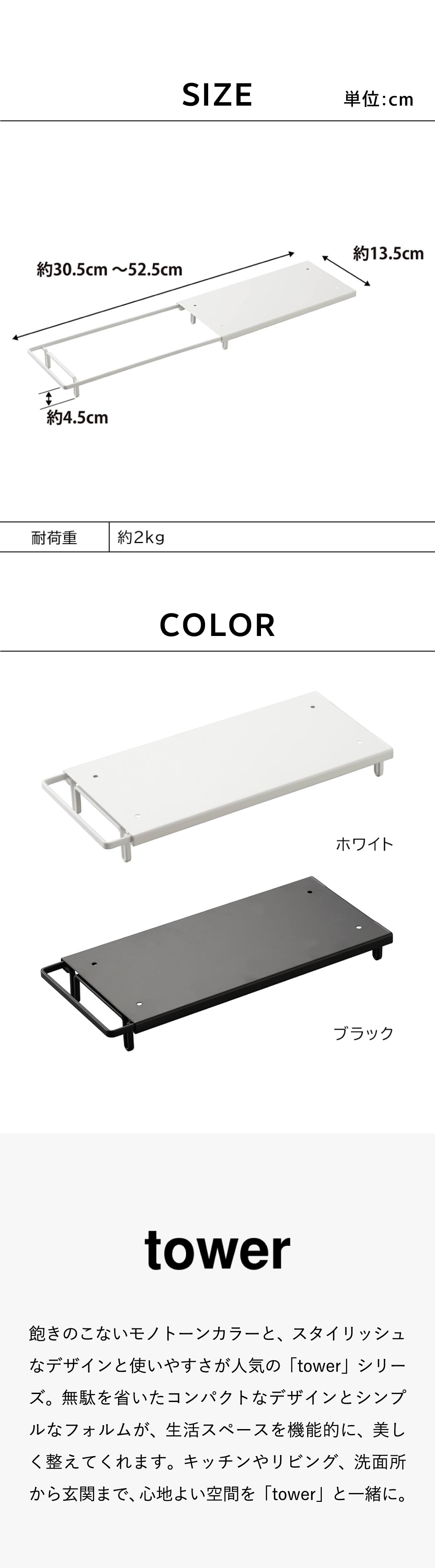 | サイズ/寸法 | 約W13.5×D30.5~52.5×H4.5cm |