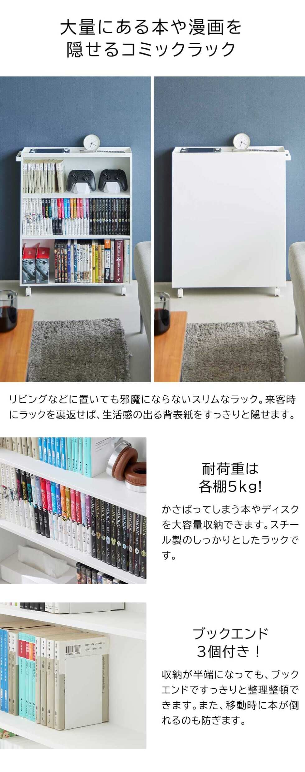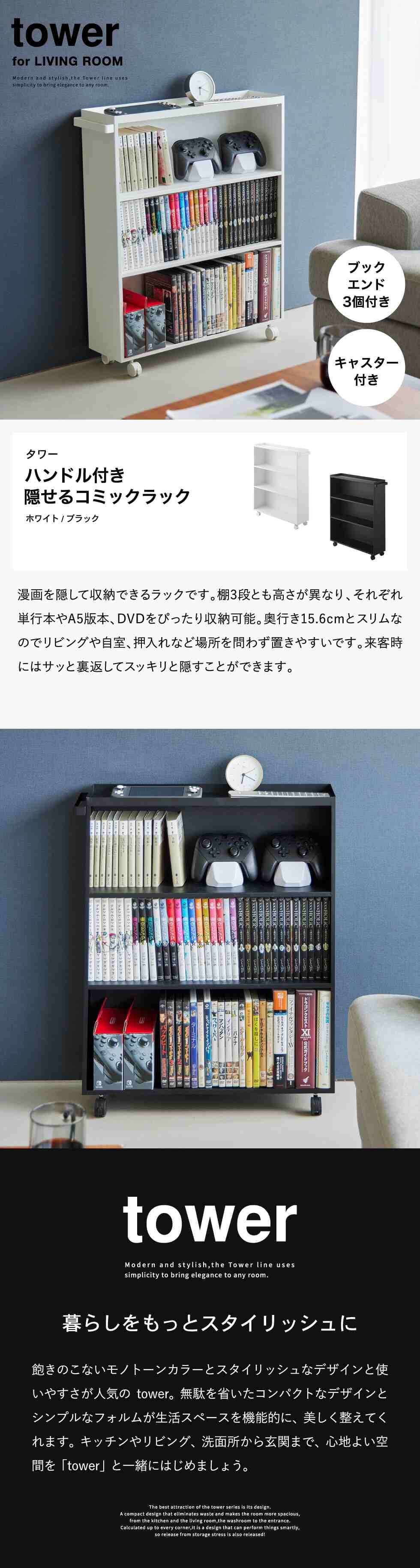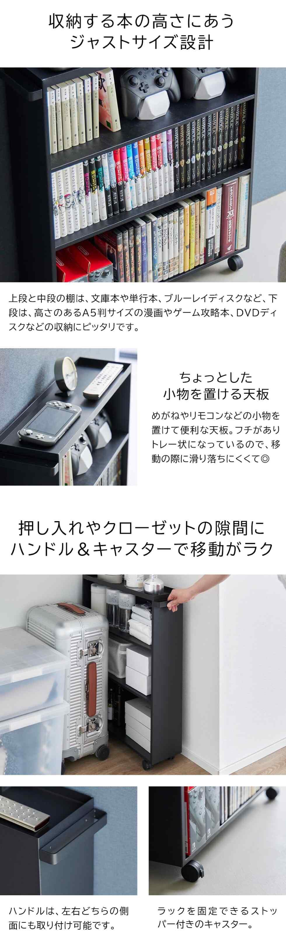 山崎実業 公式 tower ハンドル付き隠せるコミックラック タワー ブラック 1486