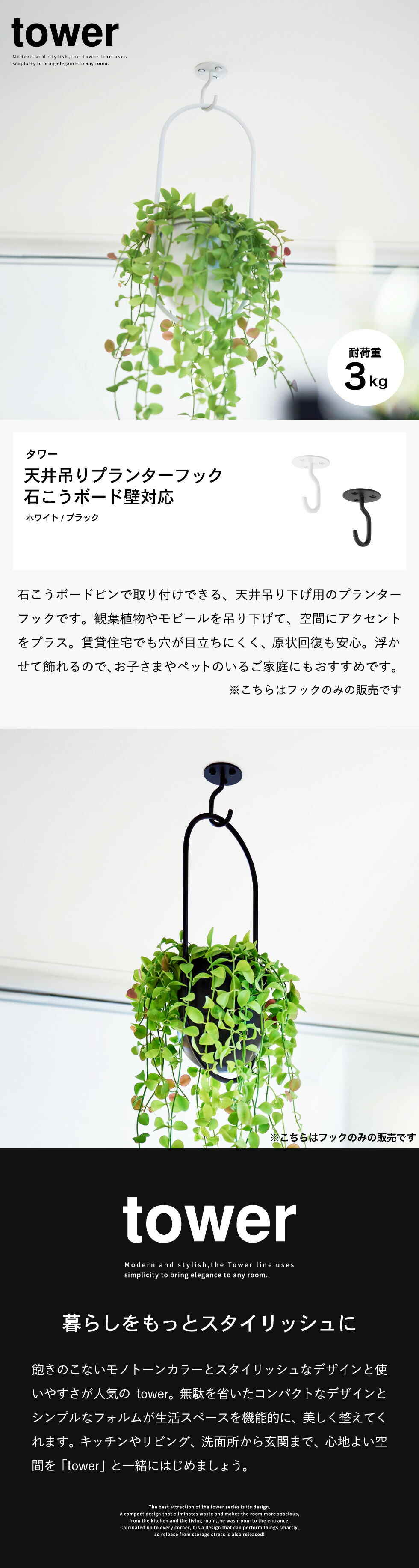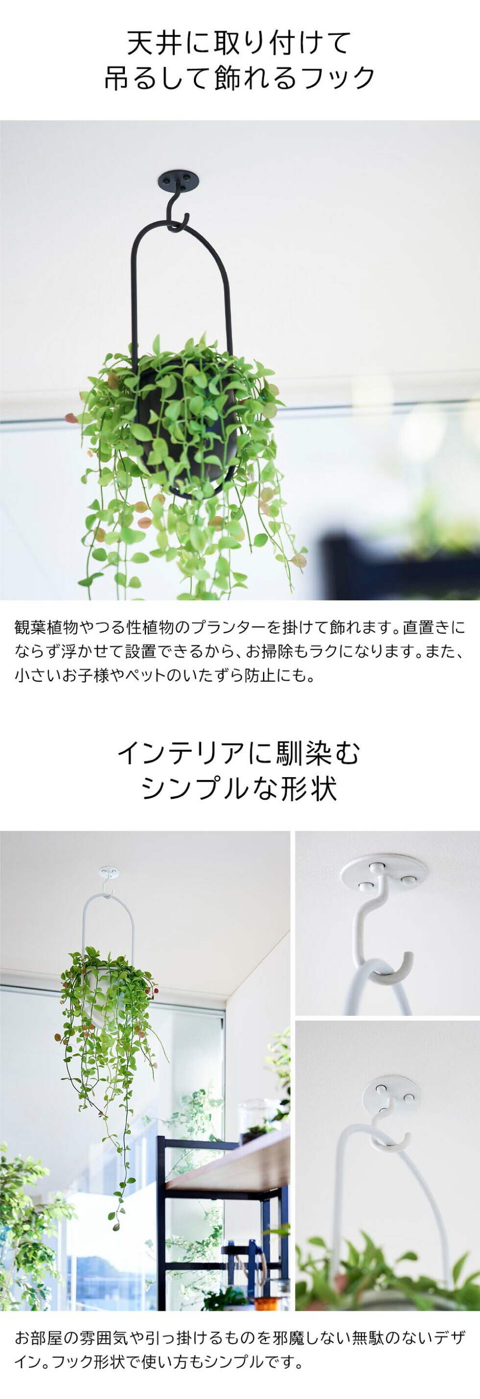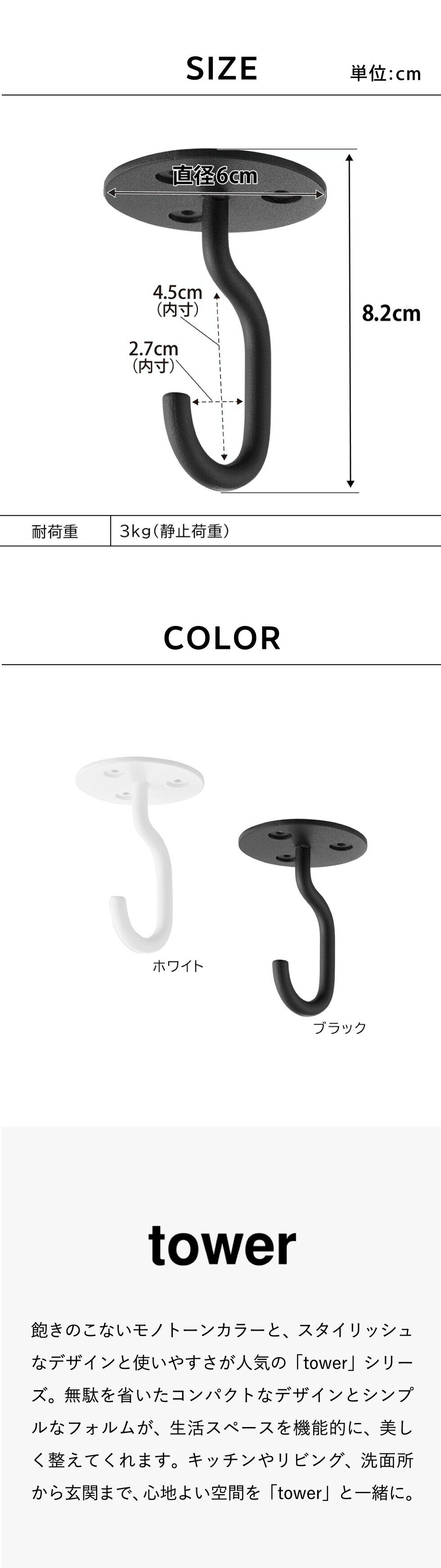山崎実業 公式 tower 天井から吊り下げできるプランターフック タワー 石こうボード壁対応 公式 10227 10228 / ブラック