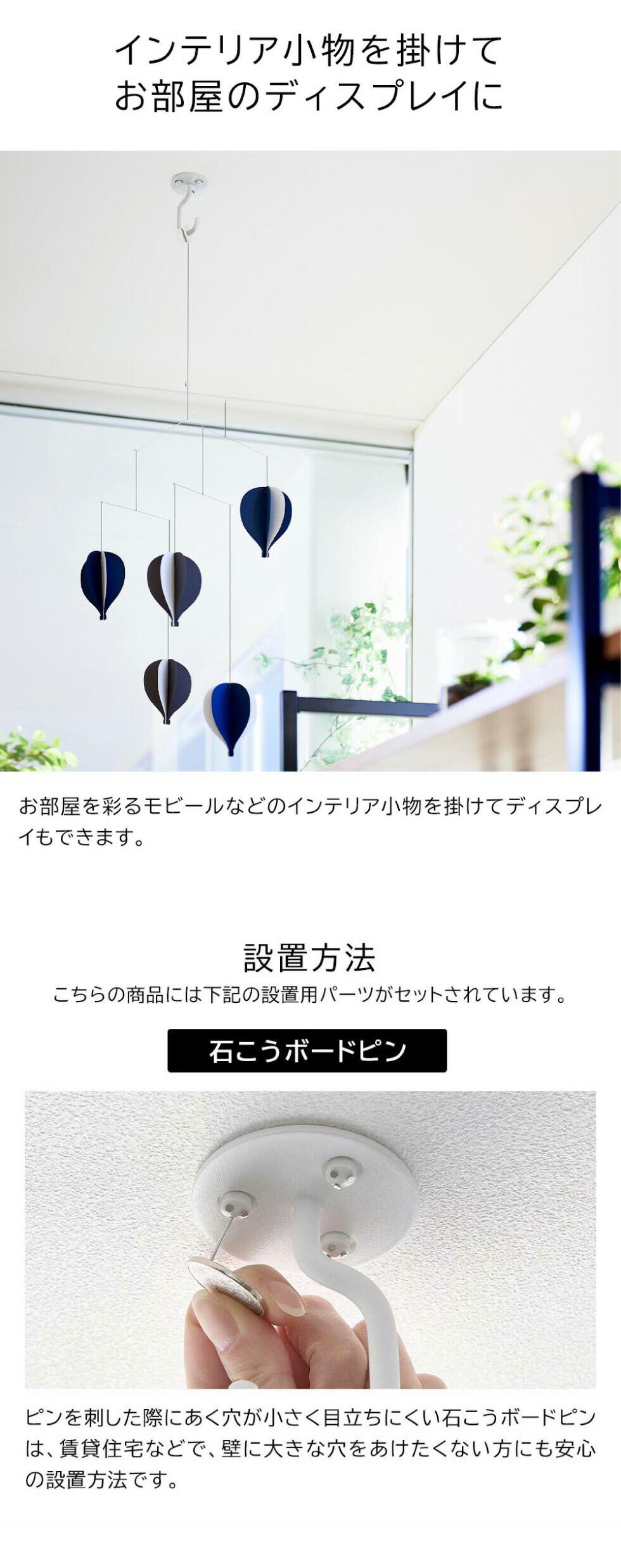 | その他詳細 1 | 付属品:石こうボードピンセット(取り付けピース×3 クギ×9 キャップ×3) 耐荷重:3kg(静止荷重) 取り付け可能な天井 壁紙・布壁紙・ビニール壁紙貼りなどの石こうボード |