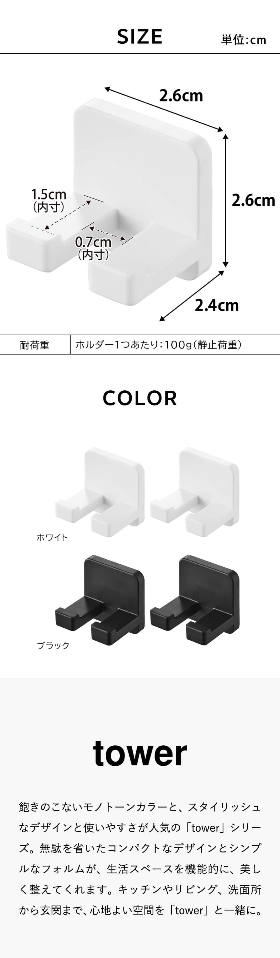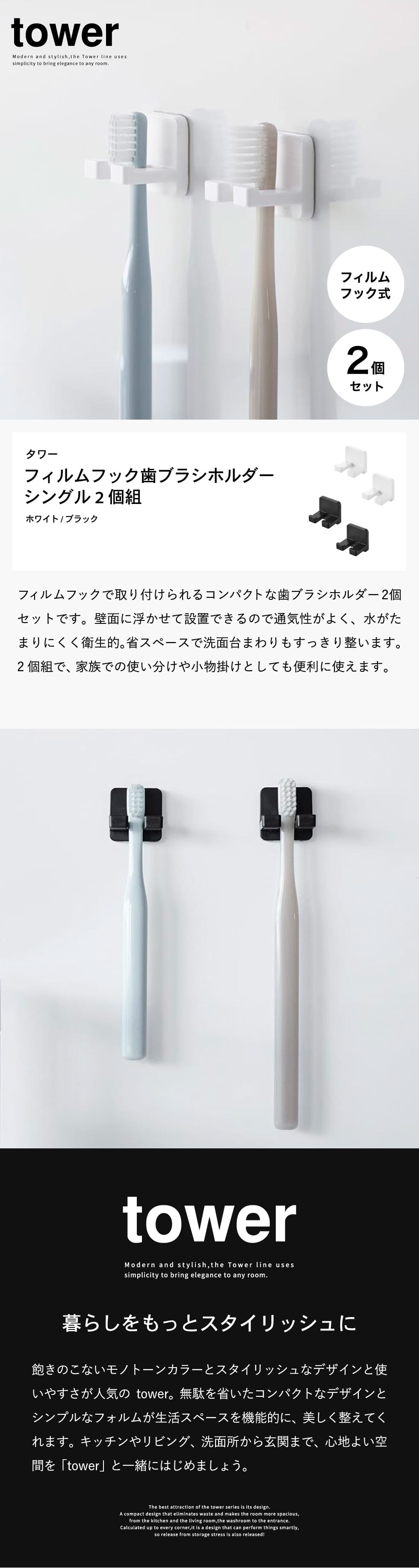 山崎実業 tower フィルムフック歯ブラシホルダー タワー シングル 2個組 10033 10034 / ブラック