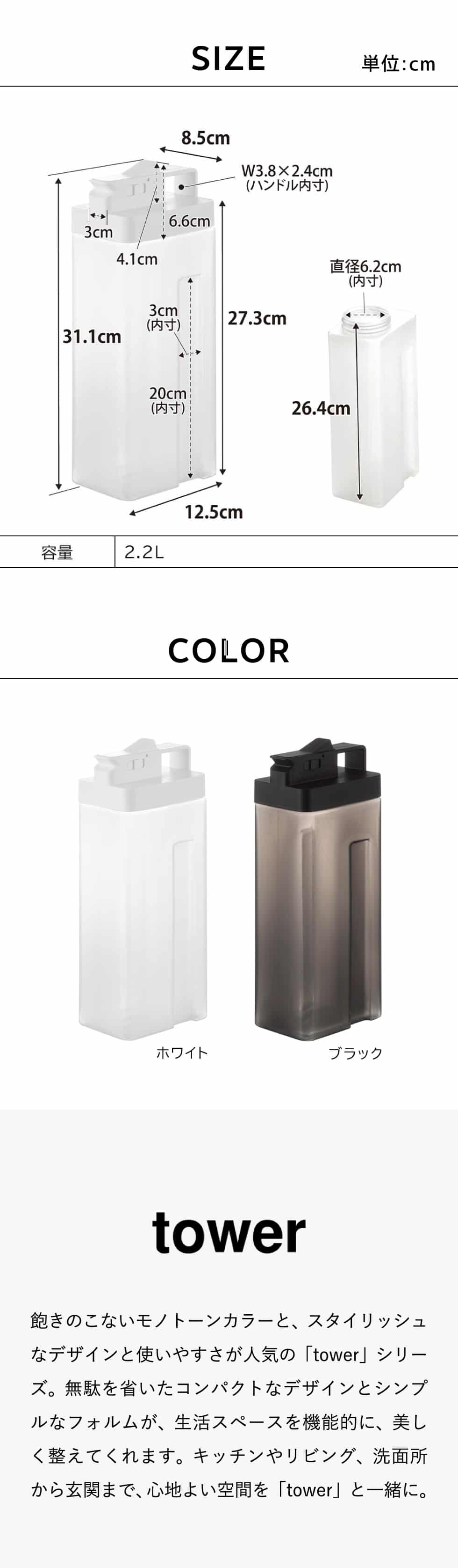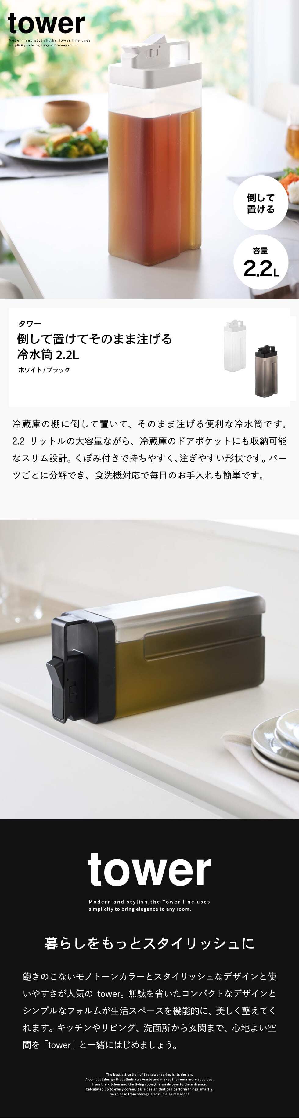 山崎実業 tower 倒して置けてそのまま注げる冷水筒 タワー 2.2L 10029 10030 / ブラック