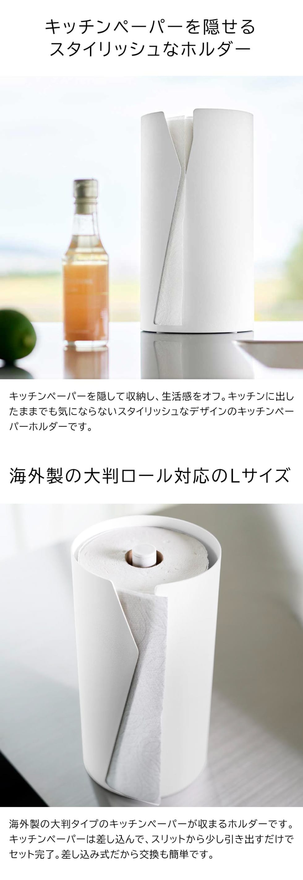 | その他詳細 1 | 対応サイズ:直径15×幅28cm以内のキッチンペーパーロール ※キッチンペーパーロールのサイズや形状によっては収納できない物もあります。 |