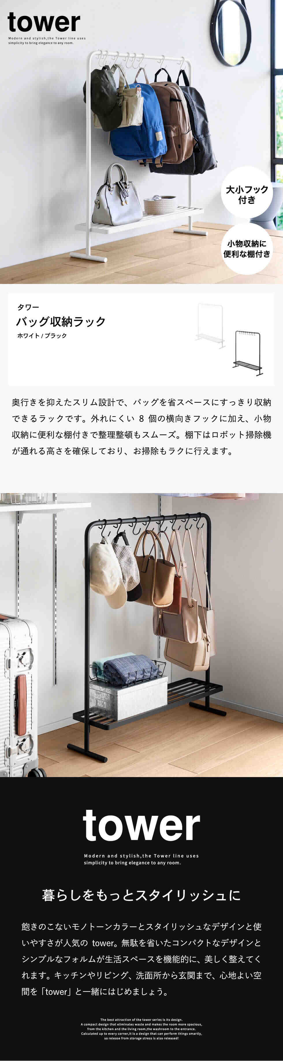 山崎実業 tower バッグ収納ラック タワー 10157 10158 / ブラック