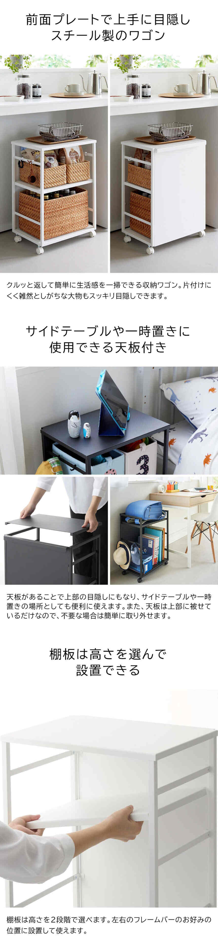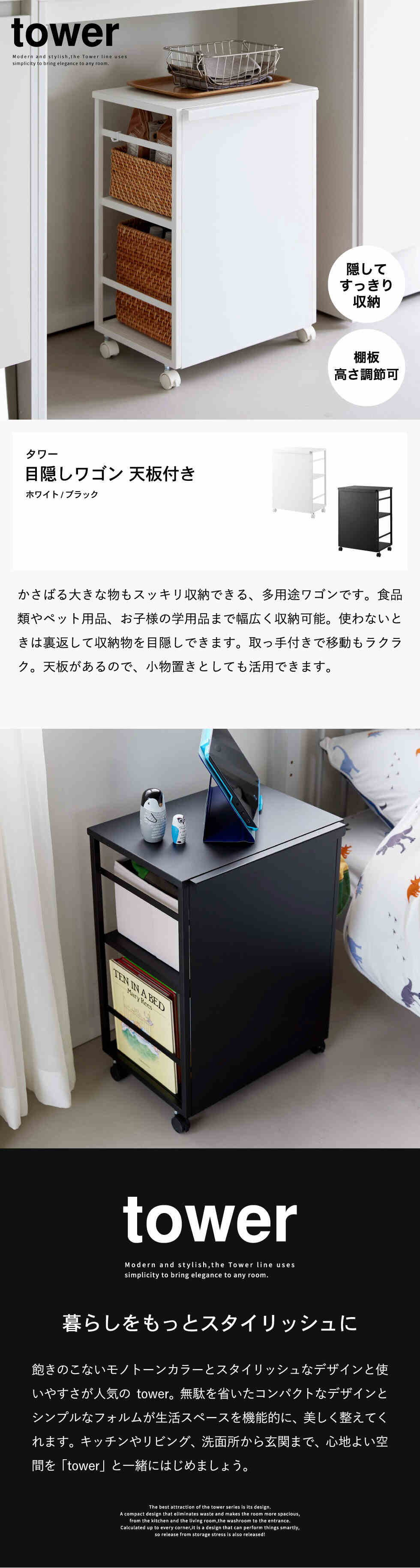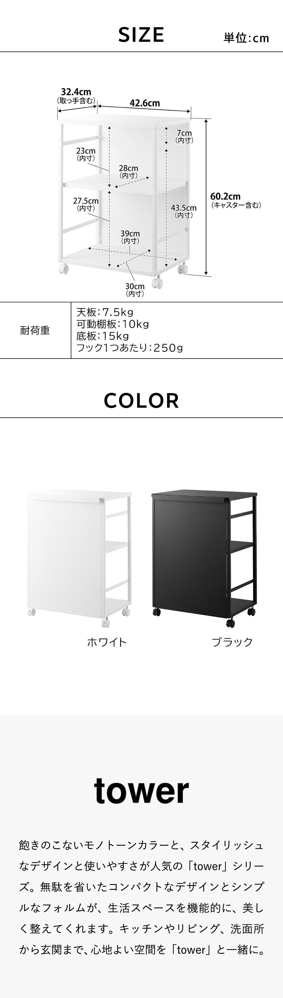 山崎実業 tower 目隠しワゴン タワー 天板付き 2段 8466 8467
