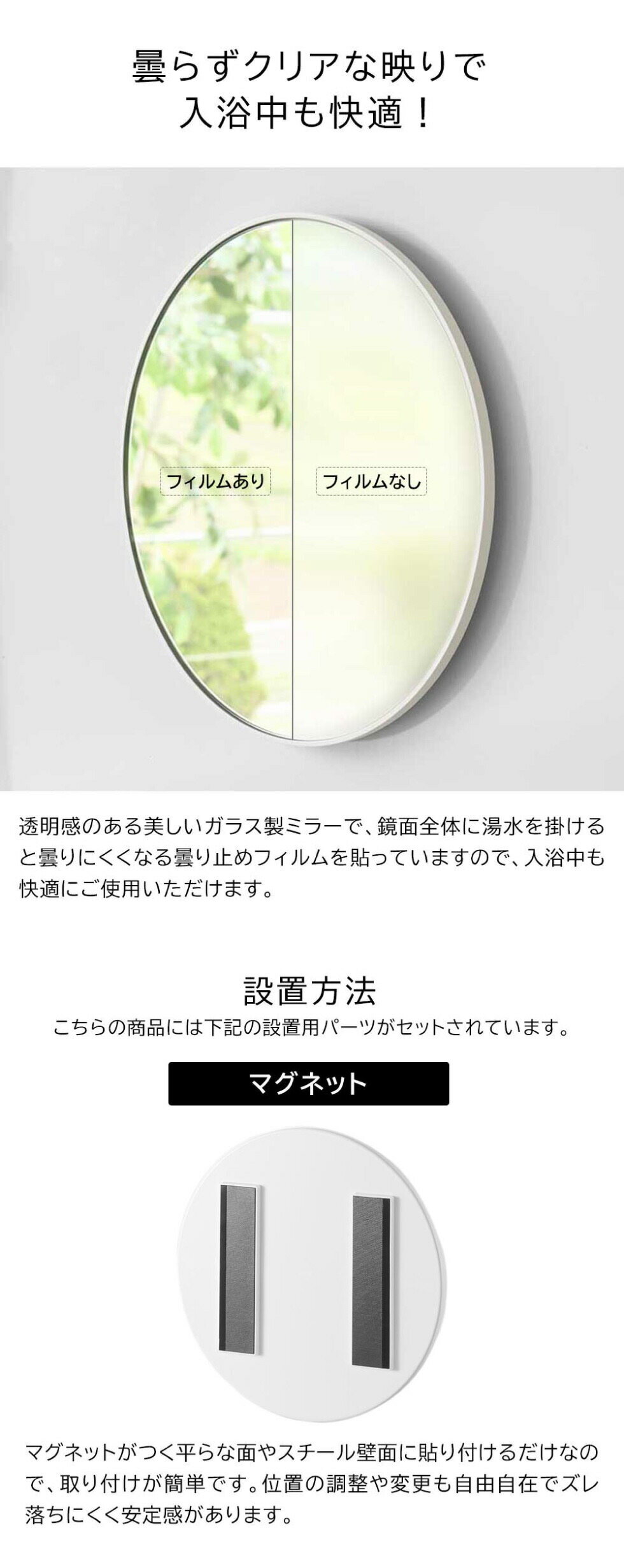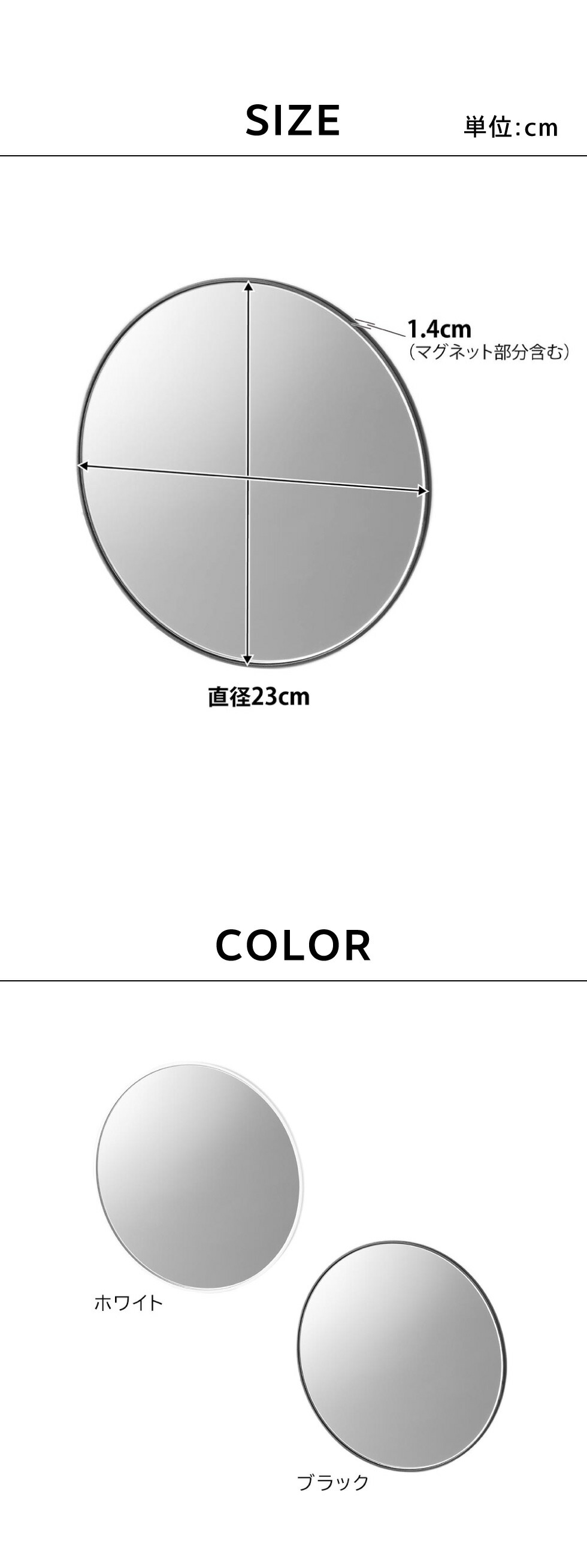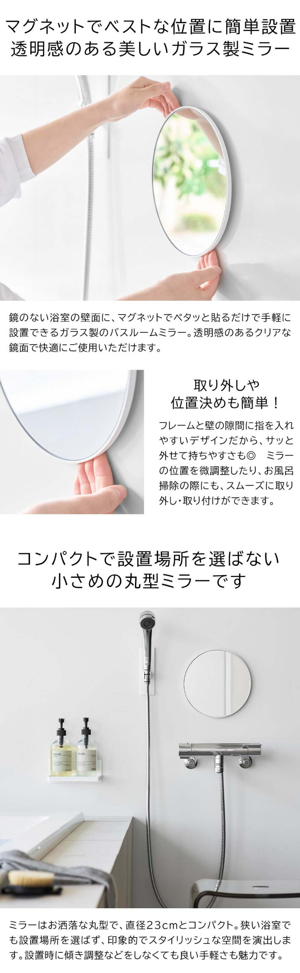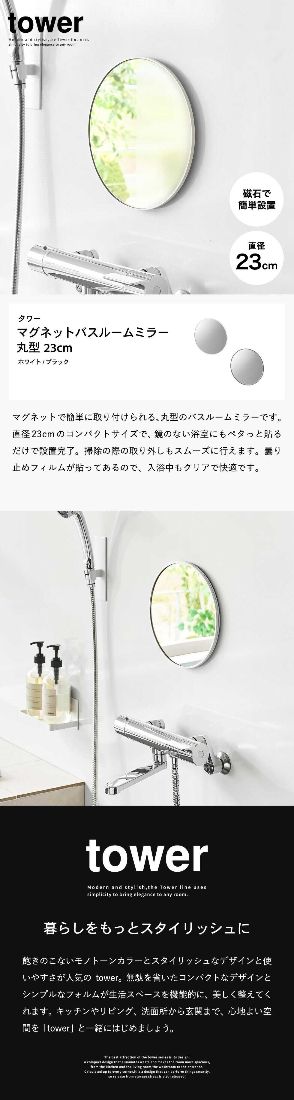 マグネットバスルームミラー タワー 丸型 23cm 山崎実業 tower 10175 10176 ホワイト ブラック / ホワイト