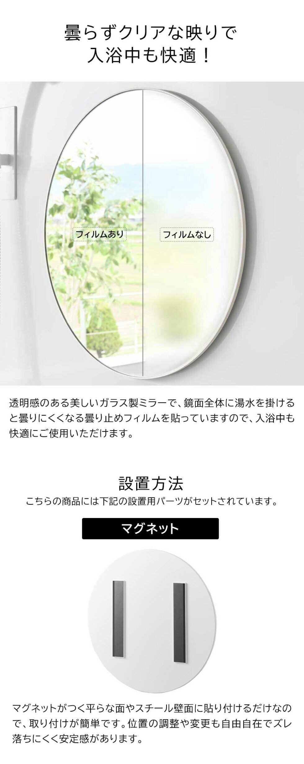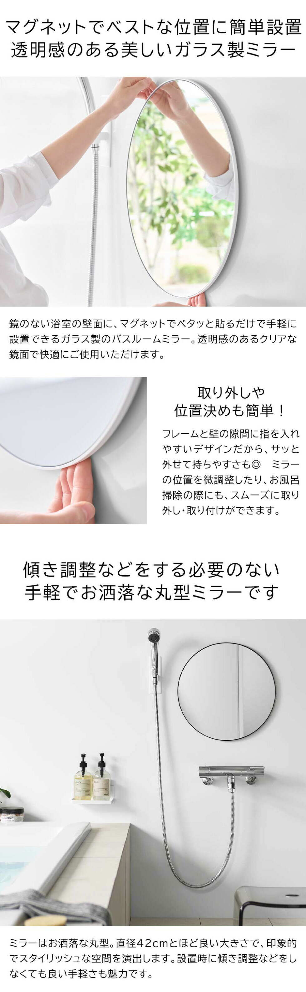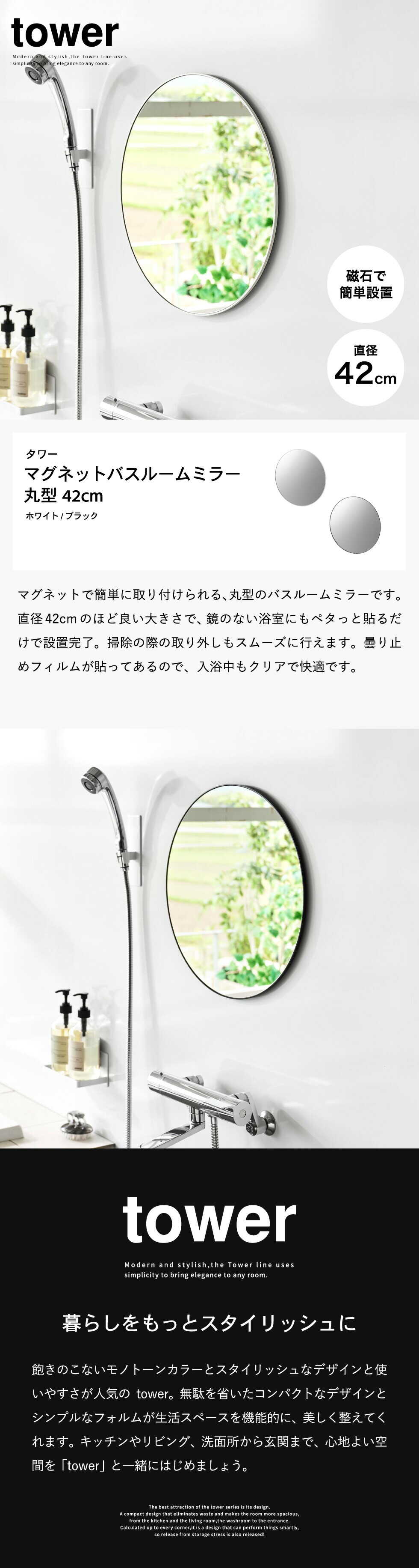 マグネットバスルームミラー タワー 丸型 42cm 山崎実業 tower 10177 10178 ホワイト ブラック / ホワイト