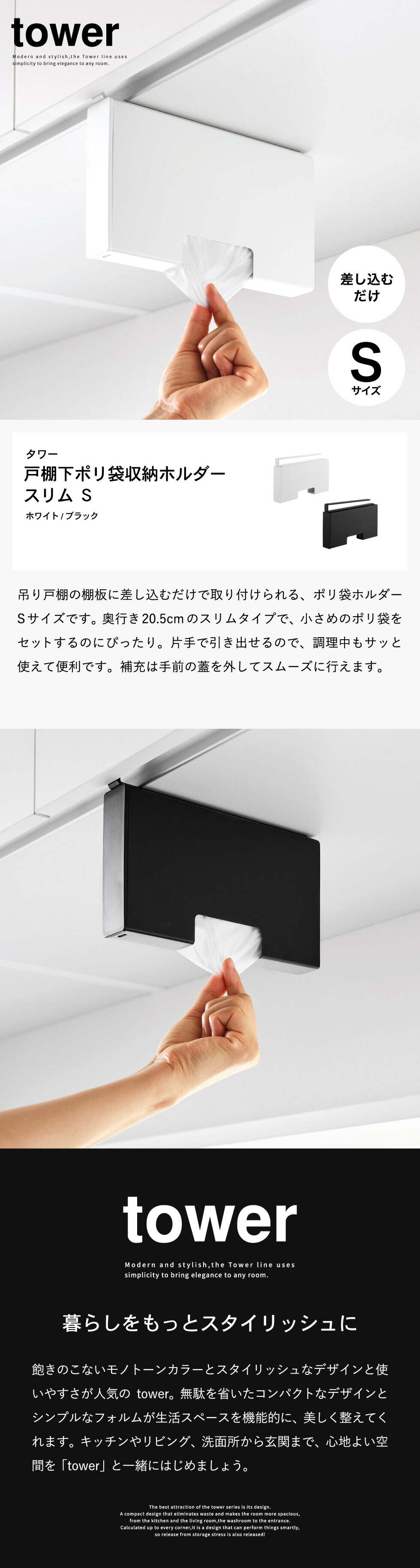 戸棚下ポリ袋収納ホルダー タワー スリム S 山崎実業 tower 10248 10249 ホワイト ブラック / ホワイト