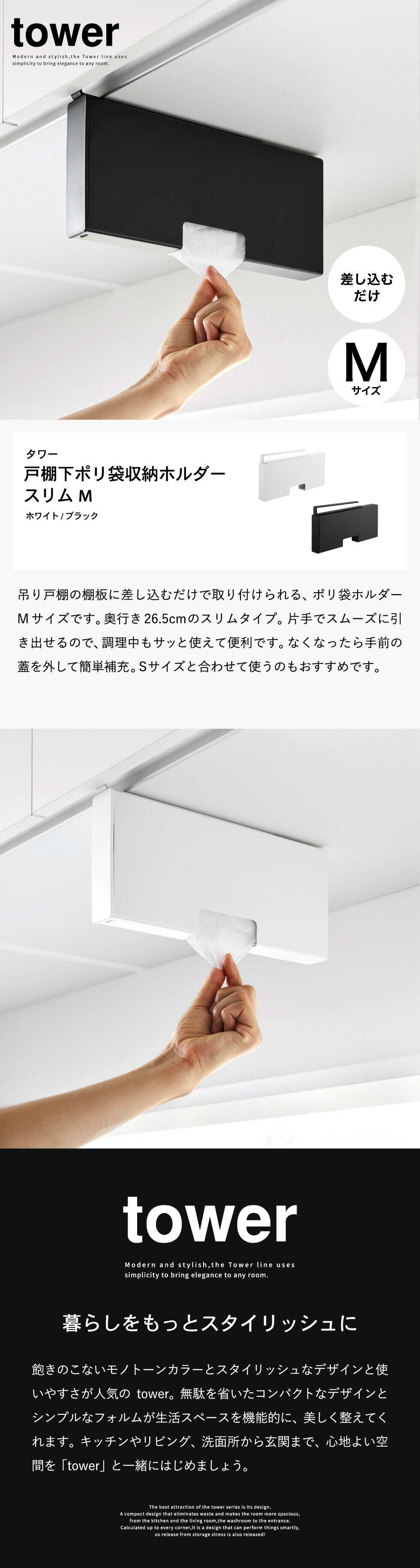 戸棚下ポリ袋収納ホルダー タワー スリム M 山崎実業 tower 10250 10251 ホワイト ブラック / ホワイト