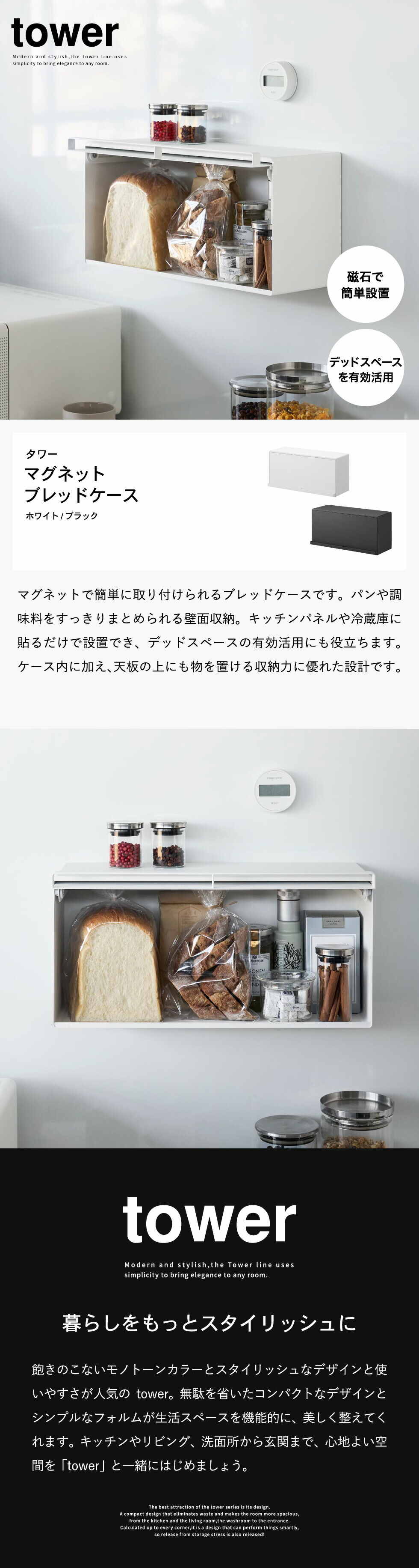 tower マグネットブレッドケース タワー 山崎実業 10258 10259 / ブラック