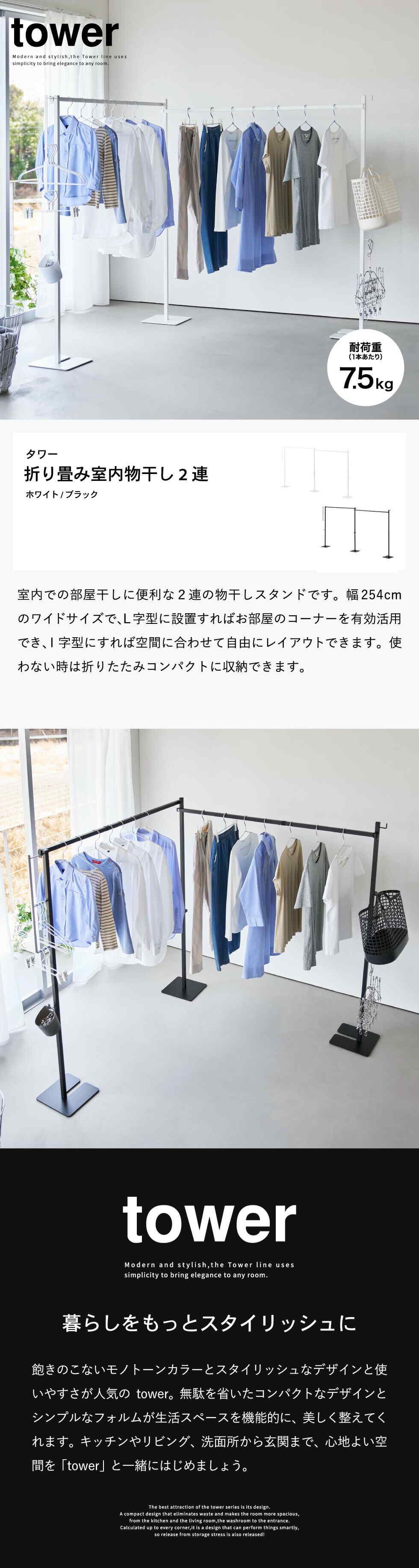 山崎実業 tower 折り畳み室内物干し タワー 2連 10266 10267 / ブラック