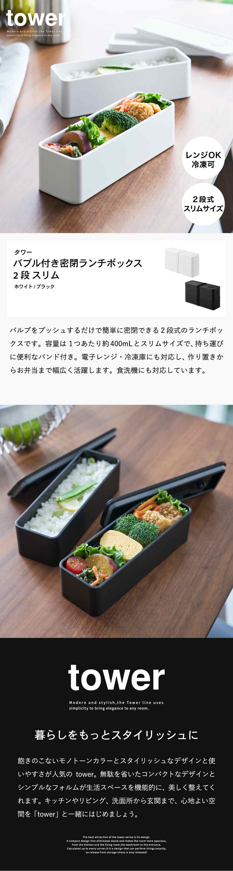 山崎実業 tower バルブ付き密閉ランチボックス タワー 2段 スリム 10272 10273 / ブラック