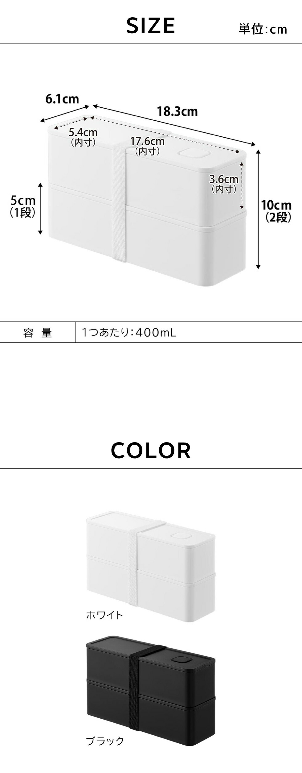| その他詳細 1 | 付属品:ゴムバンド 耐熱: 容器・蓋・仕切り:170℃ パッキン・バルブ:250℃ 耐冷: 容器・蓋・仕切り・パッキン・バルブ:-40℃ 食洗機可 レンジ可 内容量:1つあたり:400mL |