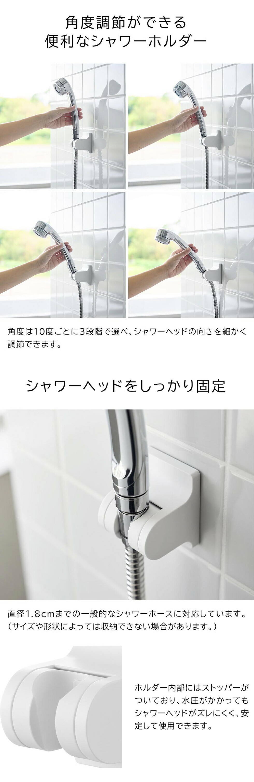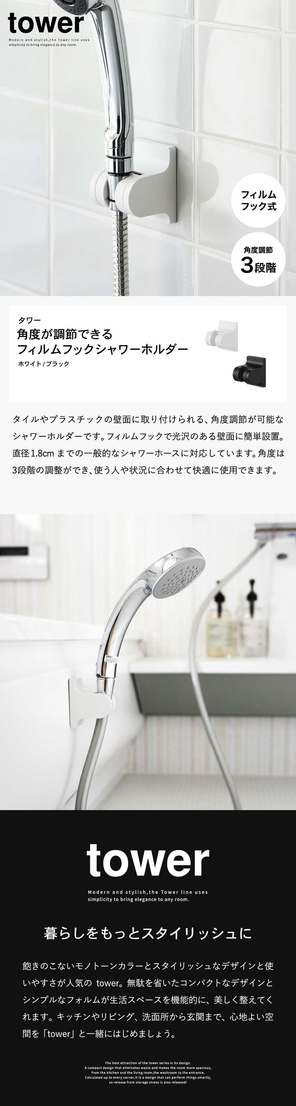 角度が調節できるフィルムフックシャワーホルダー タワー 山崎実業 tower 10288 10289 ホワイト ブラック / ホワイト