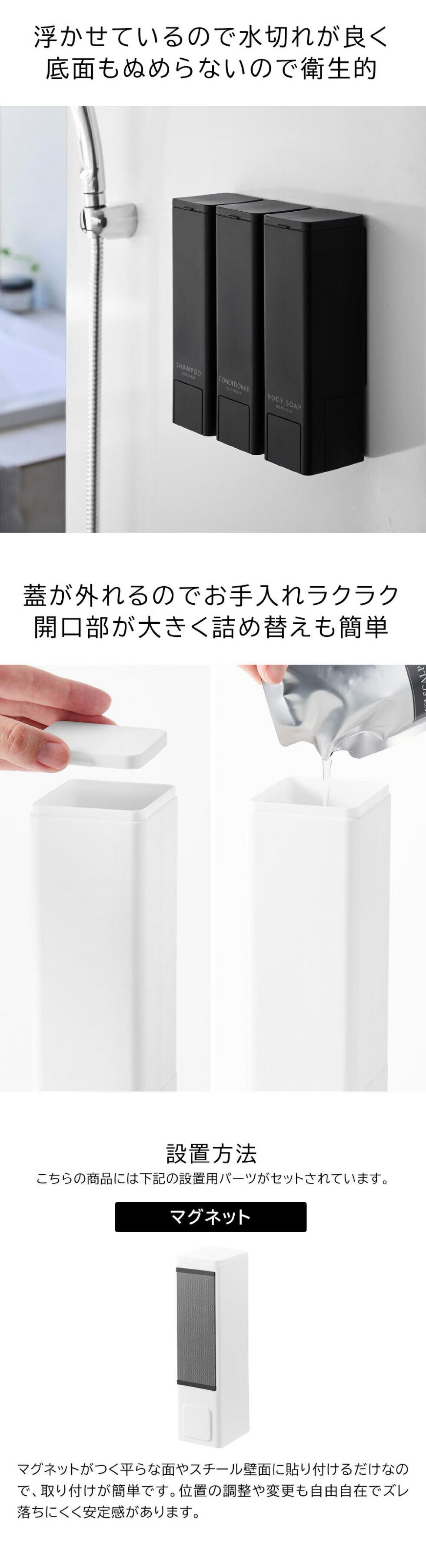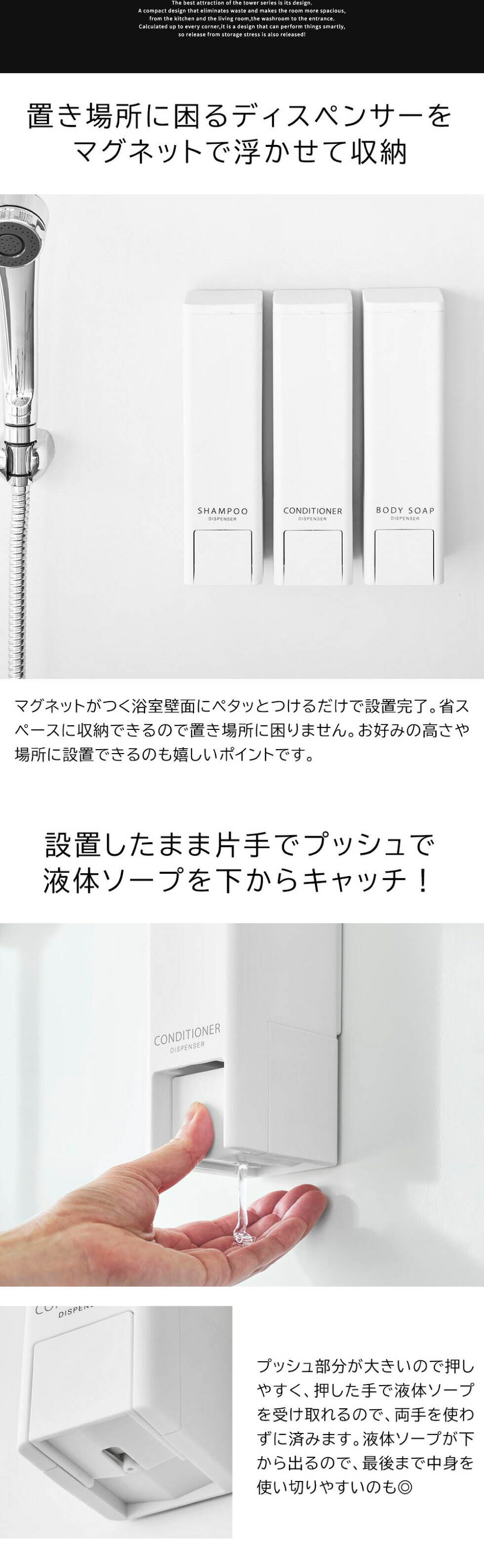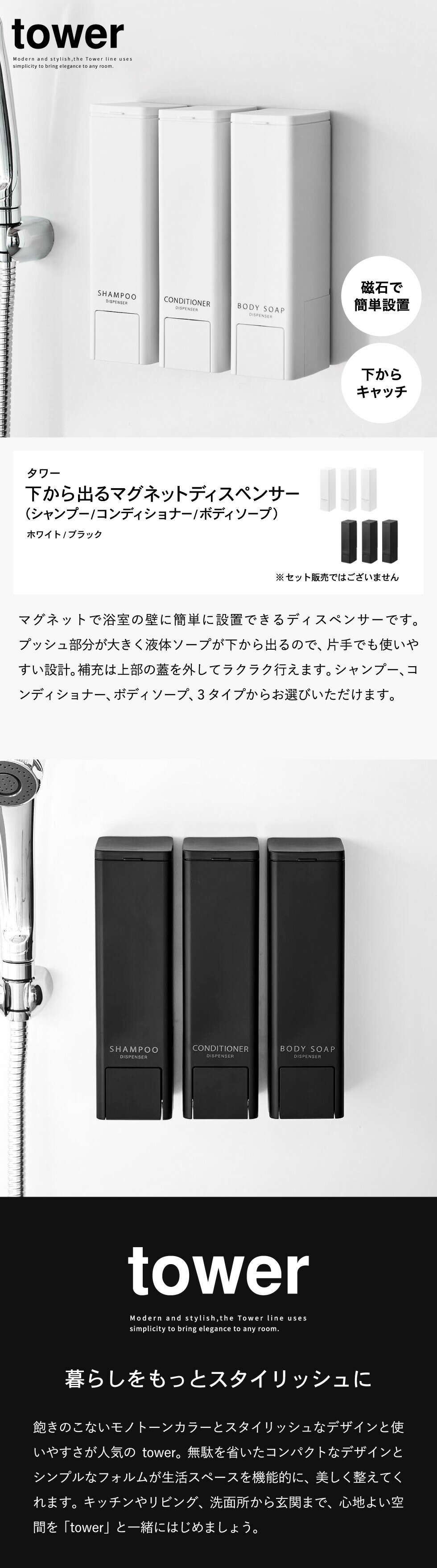 山崎実業 tower 下から出るマグネットディスペンサー タワー 10290 10291 10292 10293 10294 10295 / ブラック:ボディソープ