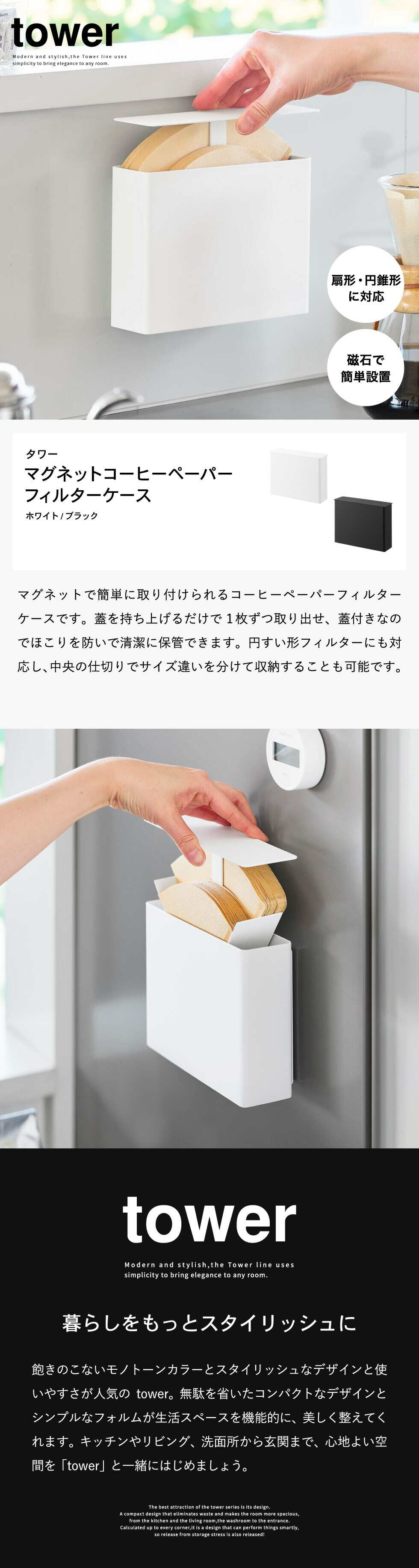 tower マグネットコーヒーペーパーフィルターケース タワー 山崎実業 10330 10331 ホワイト ブラック