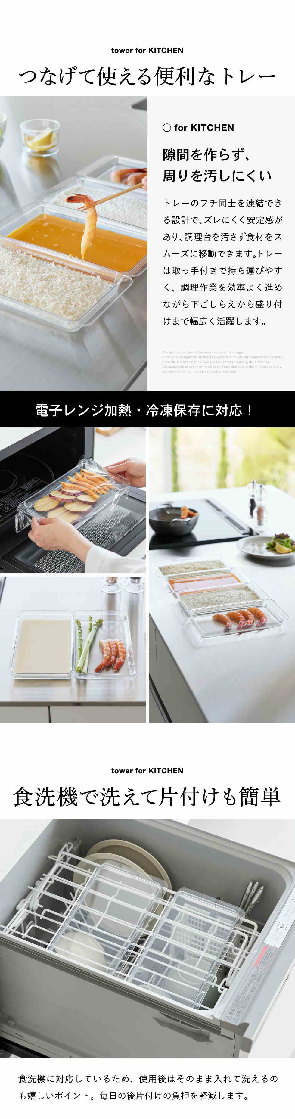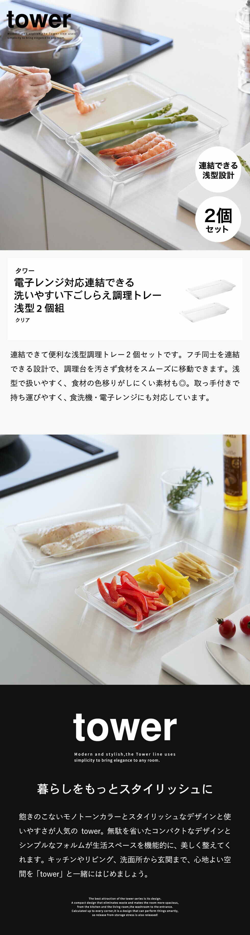 tower 電子レンジ対応連結できる洗いやすい下ごしらえ調理トレー タワー 浅型 2個組 クリア 山崎実業 10336