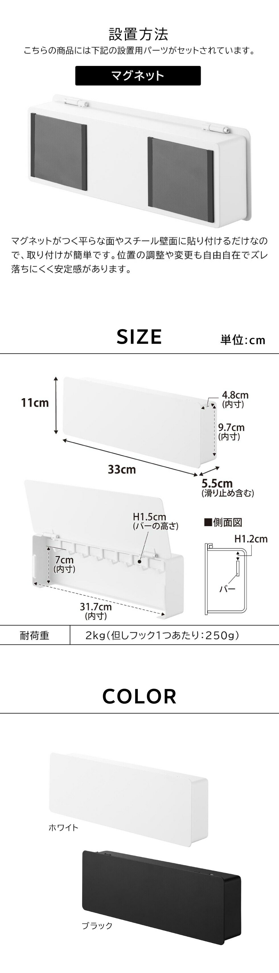 | その他詳細 1 | 付属品:六角レンチ 耐荷重:2kg(但しフック1つあたり:250g)(静止荷重) 使用できる面 マグネットがつく凹凸のない平らな面・スチール面 |