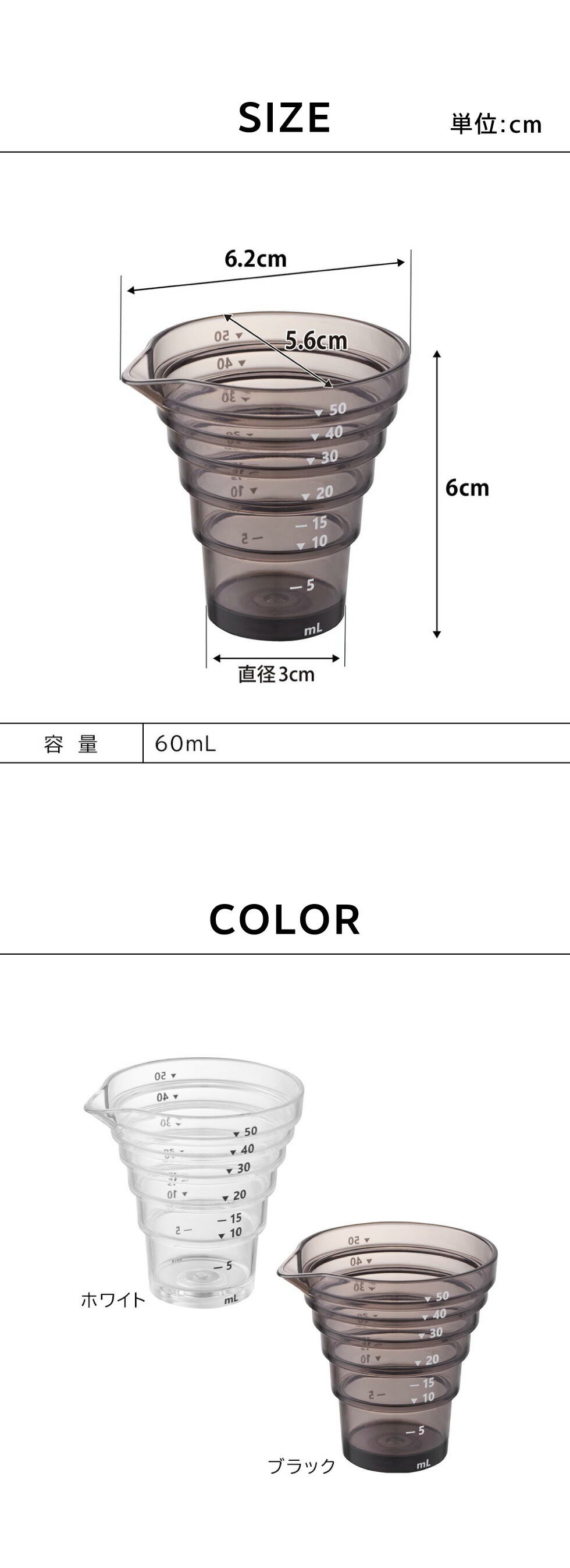 | その他詳細 1 | 耐熱: 90℃ 耐冷: -40℃ 食洗機可 内容量:60mL マグネットで設置可能な面 マグネットがつく凹凸のない平らな面・スチール面 |