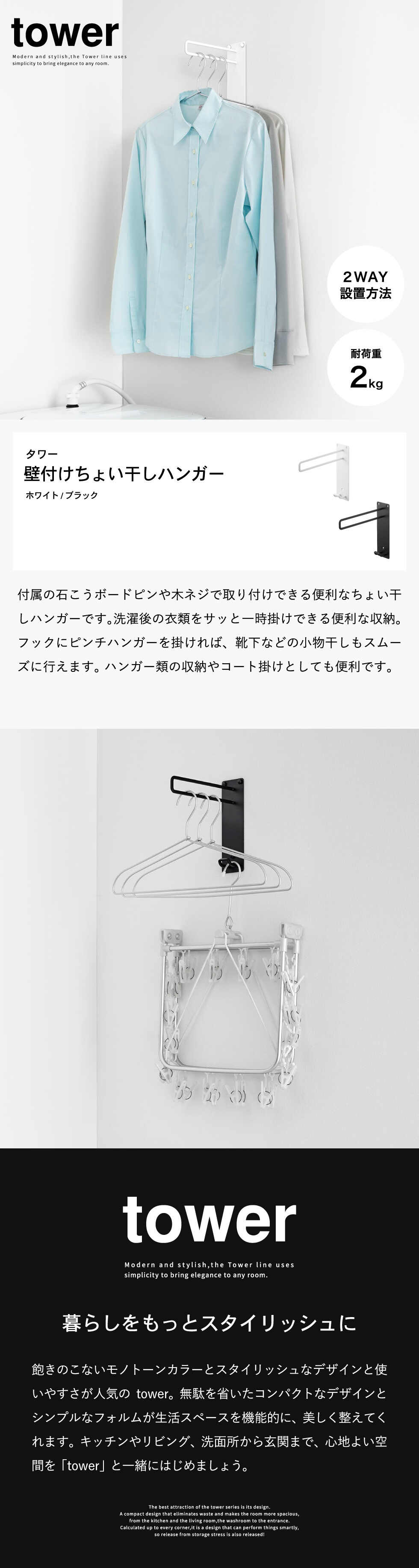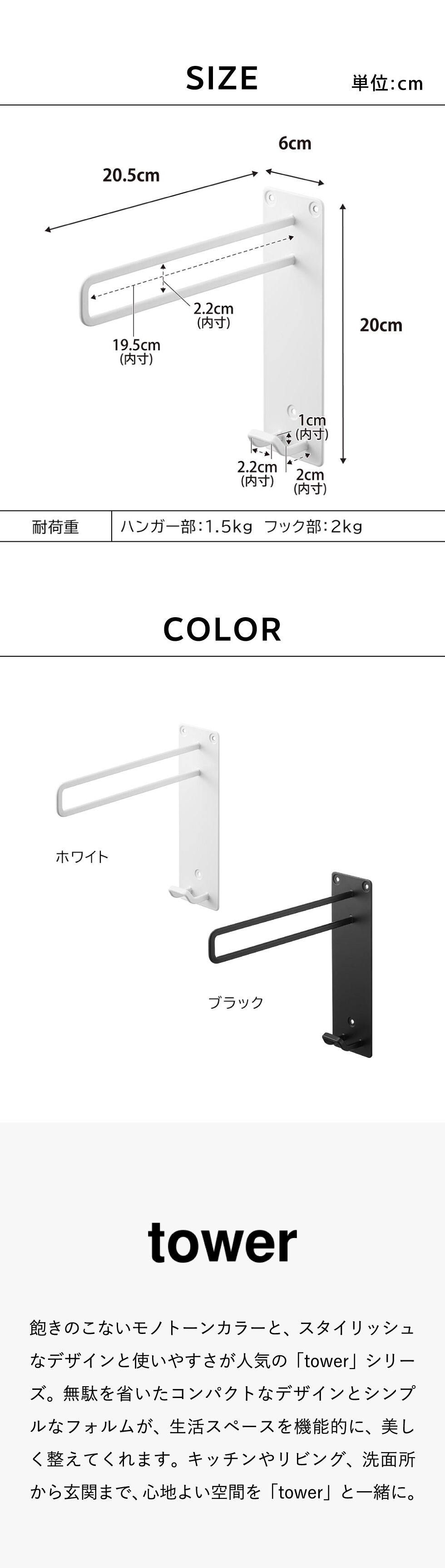 山崎実業 tower 壁付けちょい干しハンガー タワー 10387 10388 / ブラック