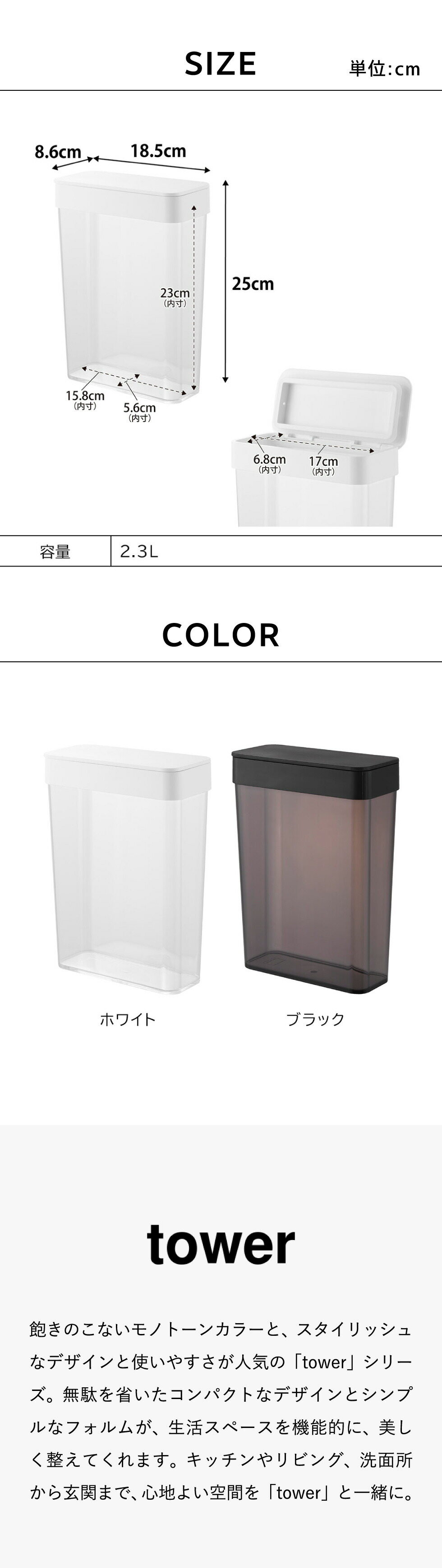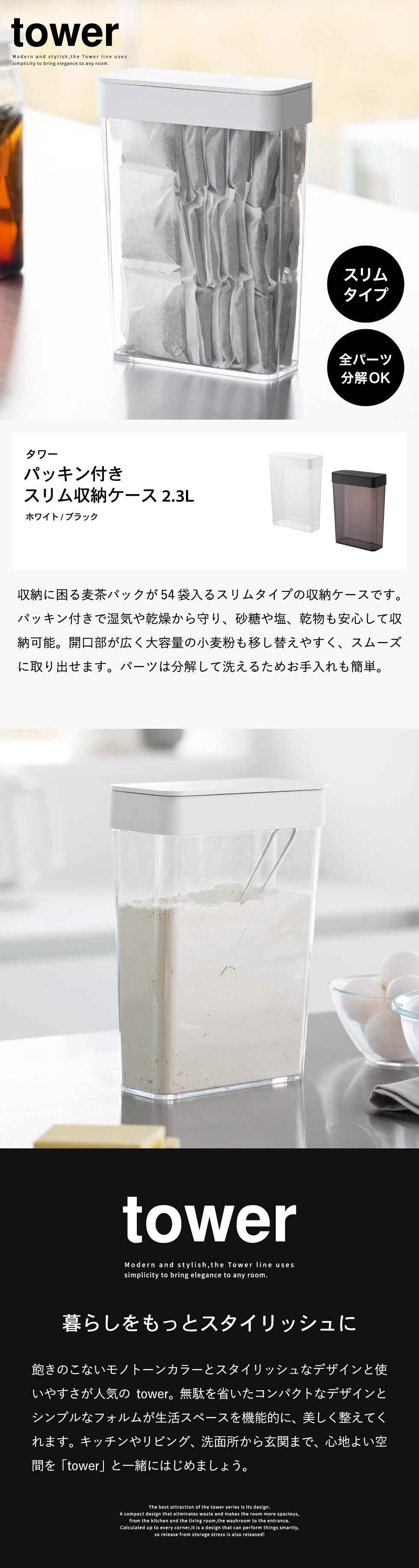 山崎実業 tower パッキン付きスリム収納ケース タワー 2.3L 10391 10392 / ホワイト