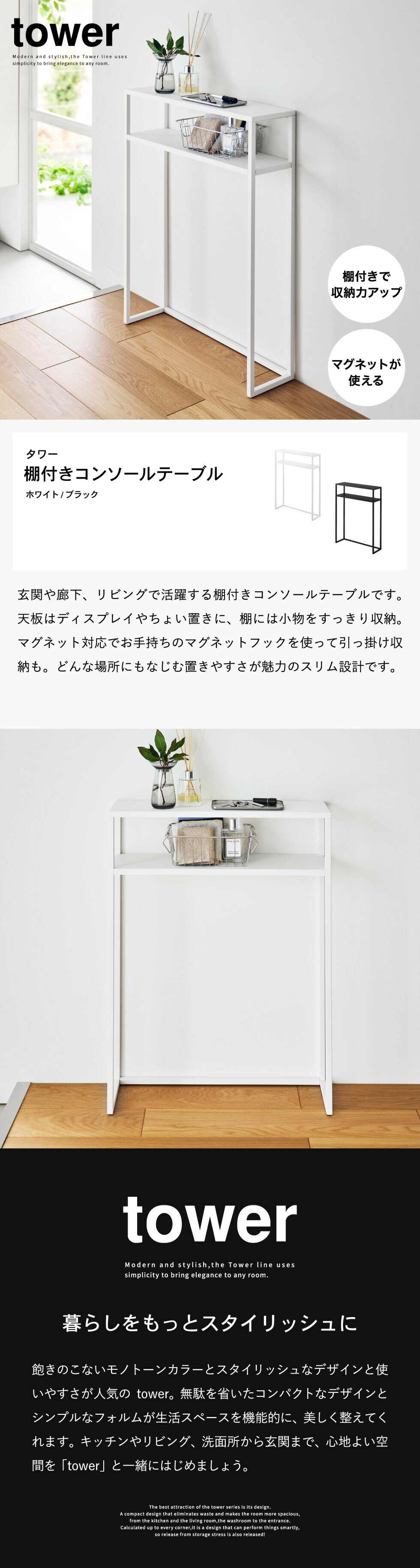 tower 棚付きコンソールテーブル タワー 山崎実業 10393 10394 / ホワイト