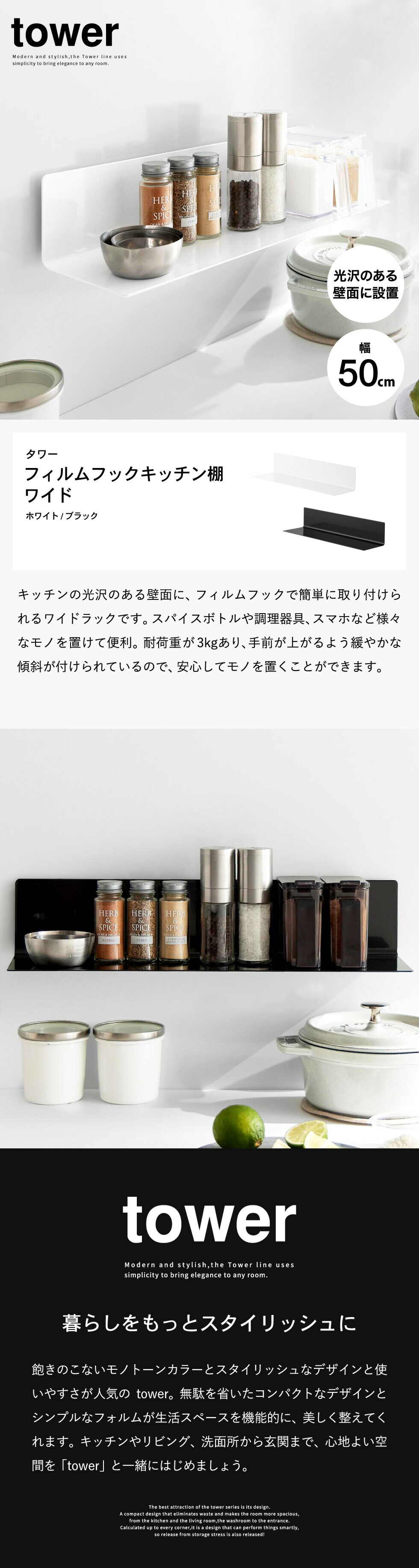 山崎実業 tower フィルムフックキッチン棚 タワー ワイド 10410 10411 / ブラック