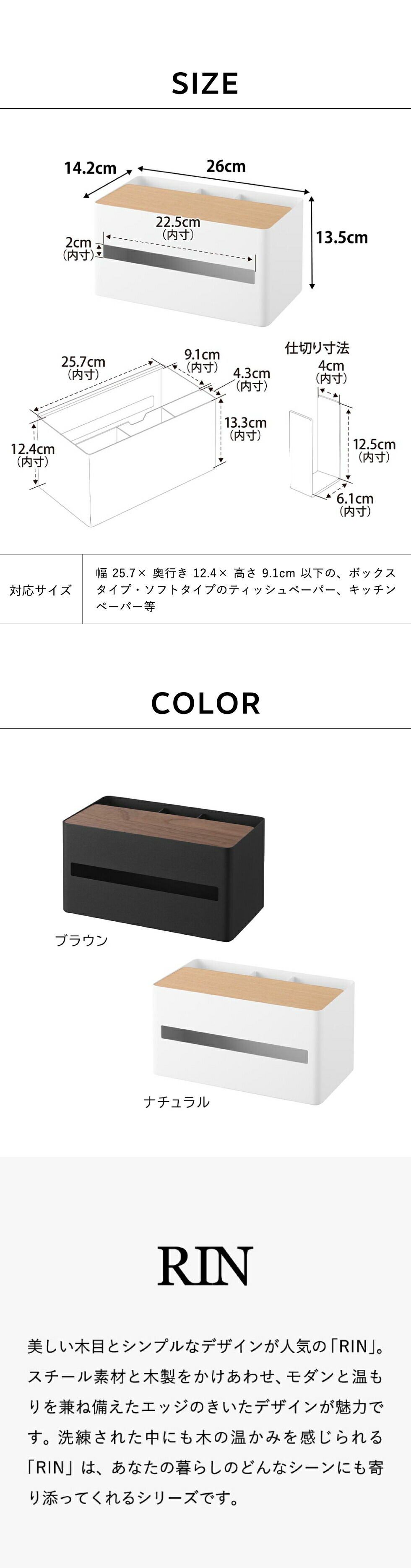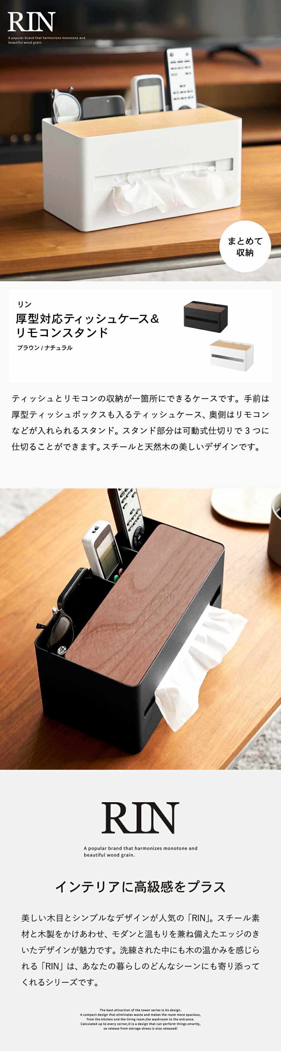 山崎実業 RIN 厚型対応ティッシュケース&リモコンスタンド リン 10414 10415 / ナチュラル
