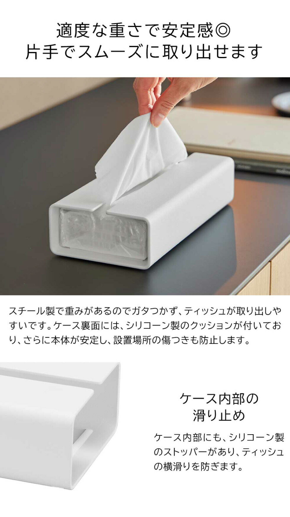 | その他詳細 1 | 対応サイズ:収納枚数の目安 160組(320枚)までのソフトパックティッシュペーパー ※ボックスタイプは対応しておりません。※ティッシュペーパーのサイズや形状によっては収納できない場合があります。 |