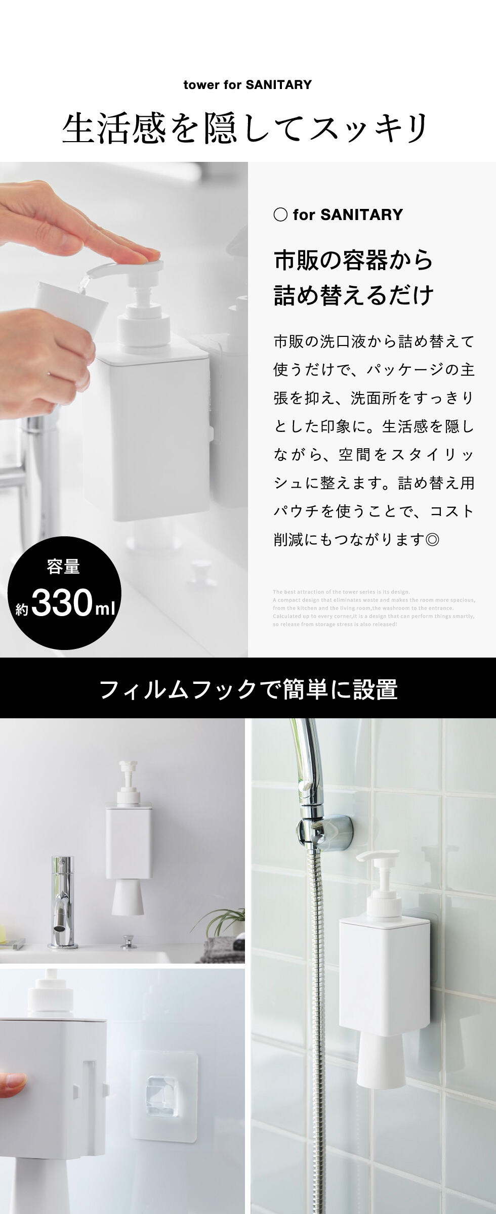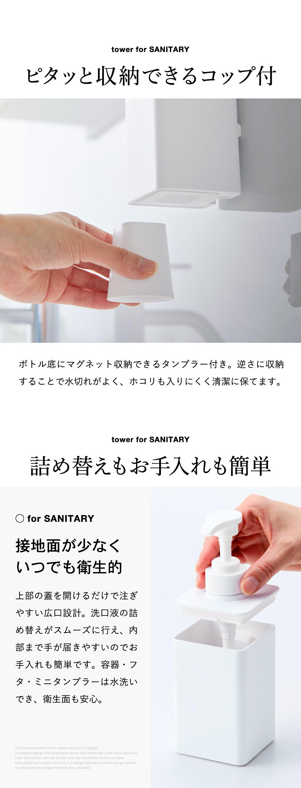 tower フィルムフックマウスウォッシュディスペンサー&ミニタンブラー タワー 山崎実業 10539 10540 / ホワイト