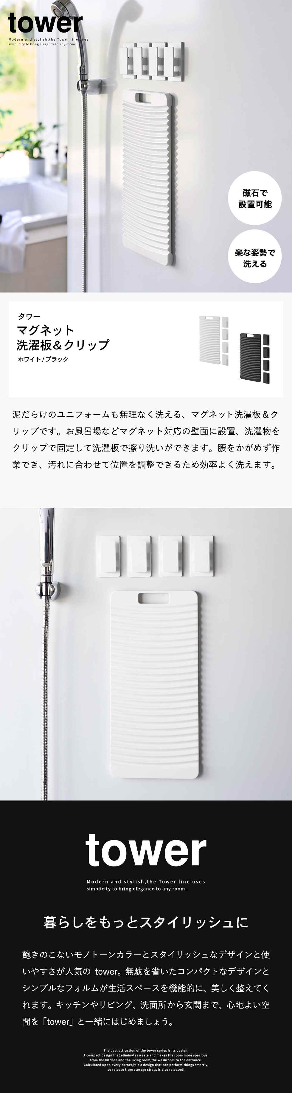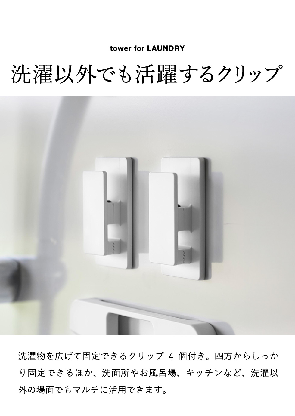 tower マグネット洗濯板&クリップ タワー 山崎実業 10553 10554 / ホワイト