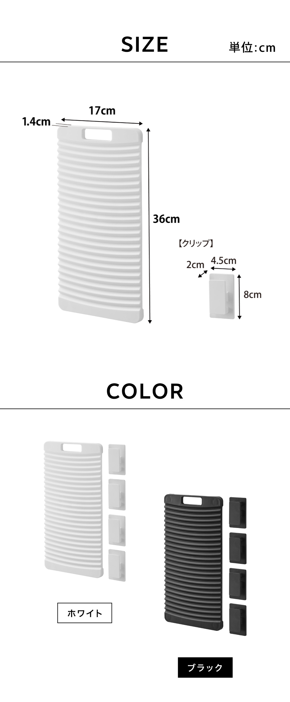 | サイズ/寸法 | 洗濯板:W17×D1.4×H36cm、クリップ:W4.5×D2×H8cm(1つあたり) |